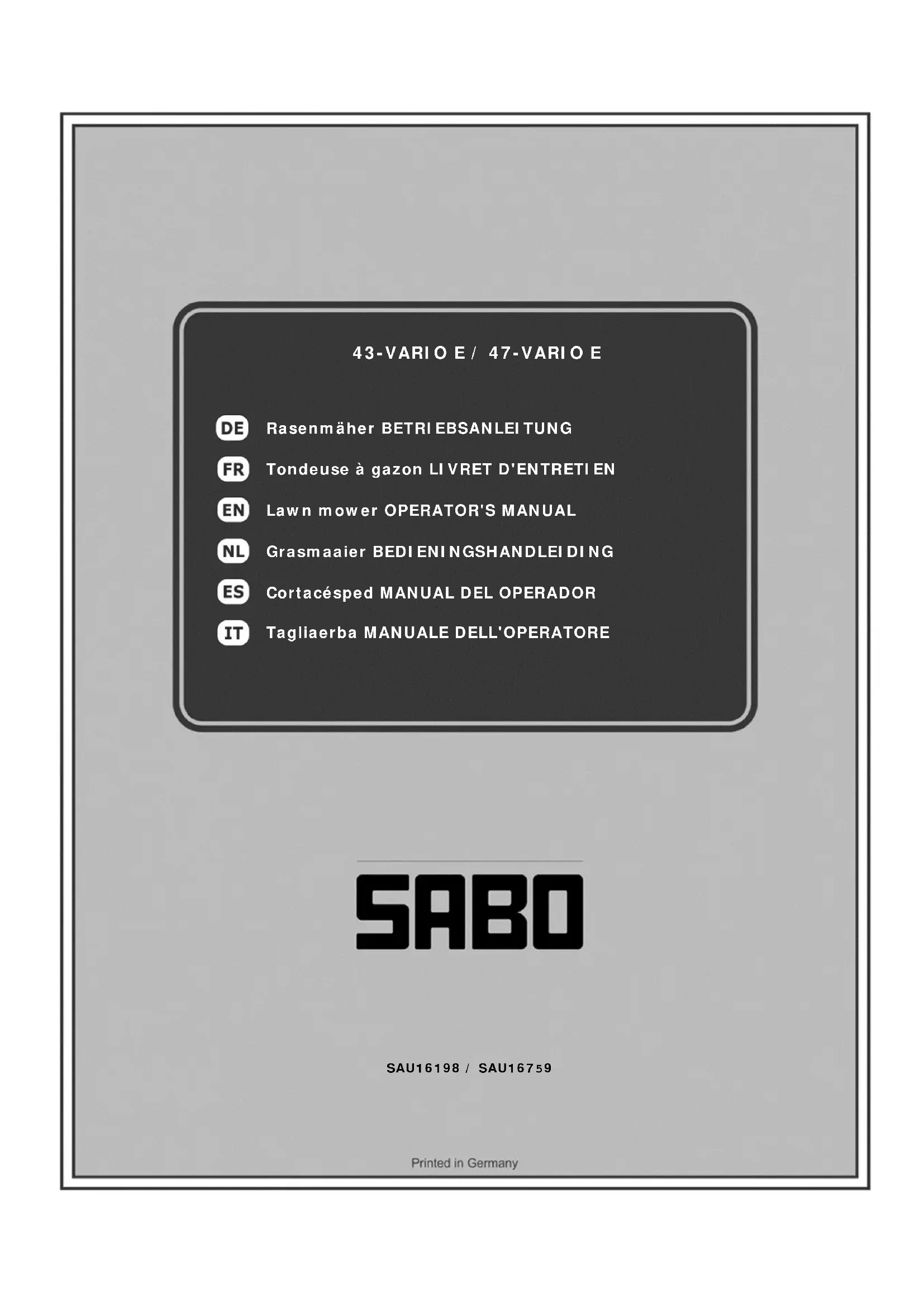 43Vario E - Tondeuse à gazon SABO - Notice d'utilisation et mode d'emploi gratuit