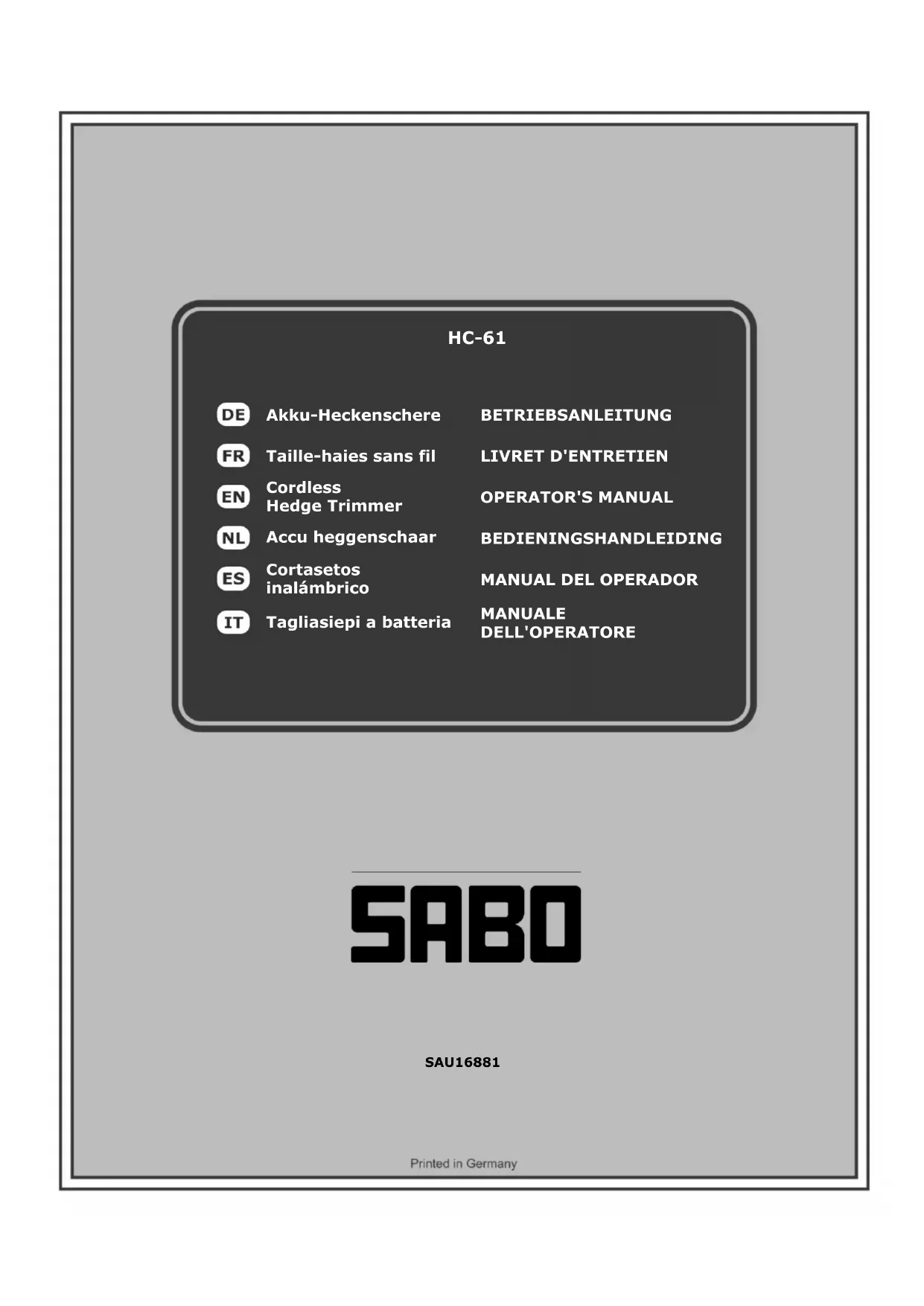 HC61 - Taille-haies SABO - Notice d'utilisation et mode d'emploi gratuit