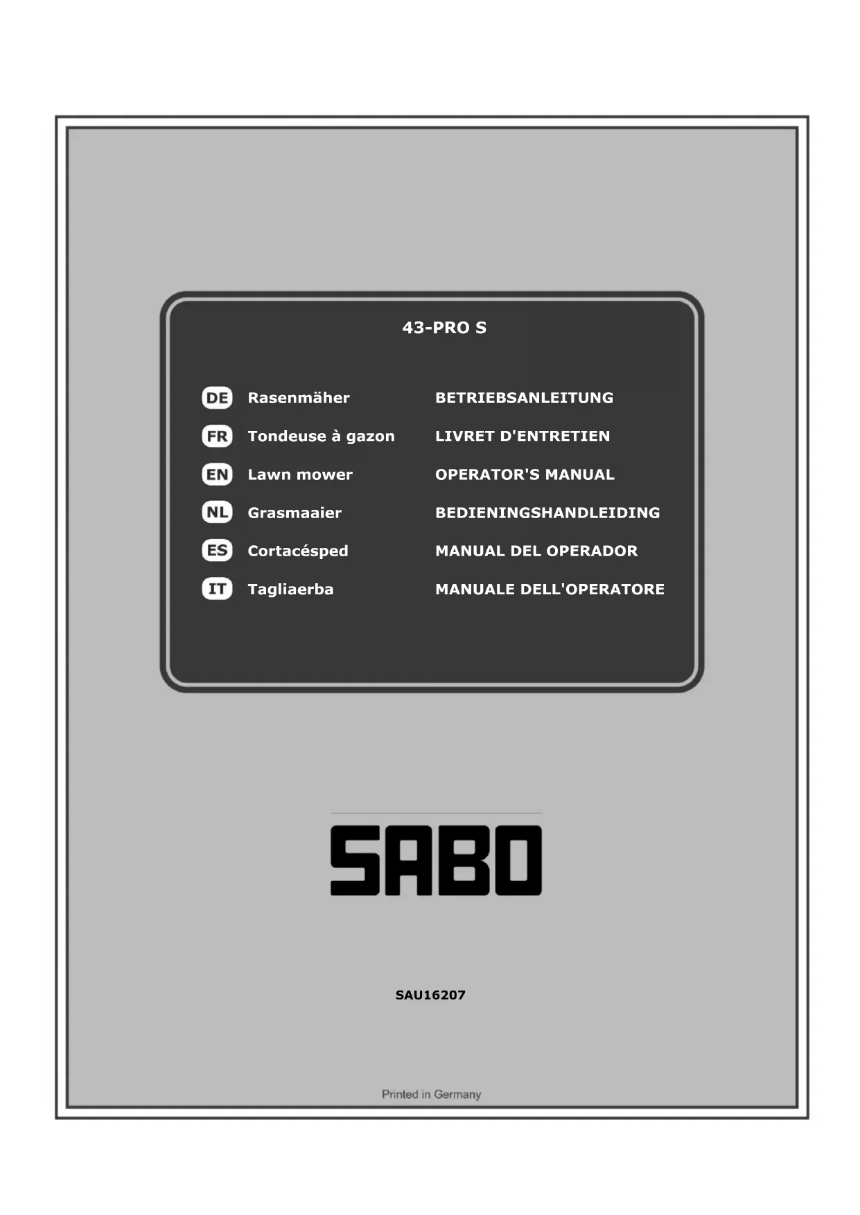 43PRO S - Tondeuse à gazon SABO - Notice d'utilisation et mode d'emploi gratuit