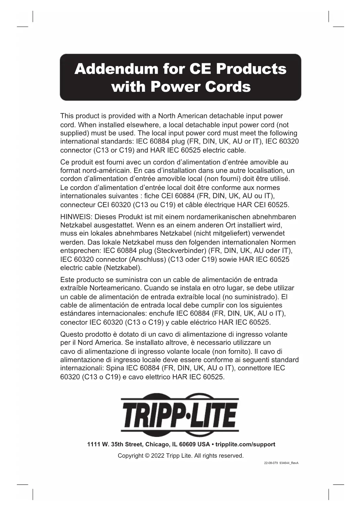 Retrouvez gratuitement la notice de l'appareil B098048 Tripp Lite au format PDF.