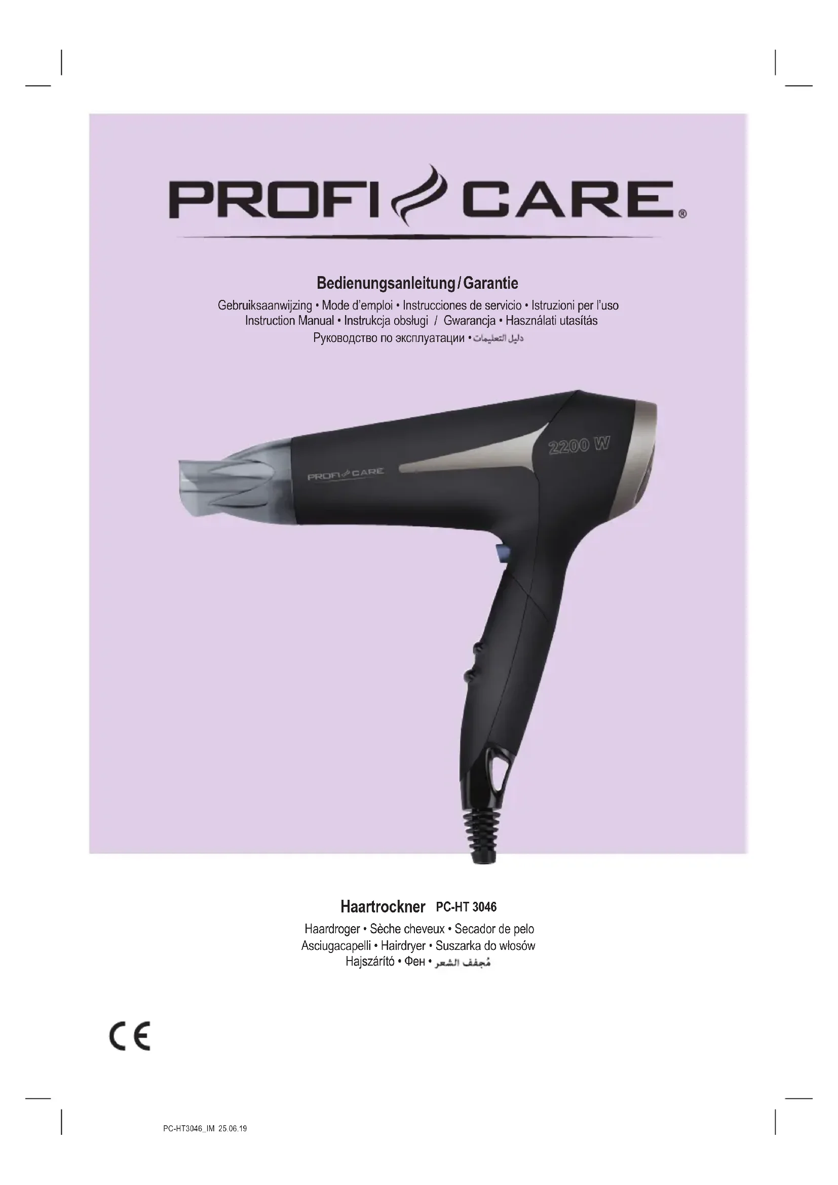 PCHT 3046 - Sèche-cheveux ProfiCare - Notice d'utilisation et mode d'emploi gratuit
