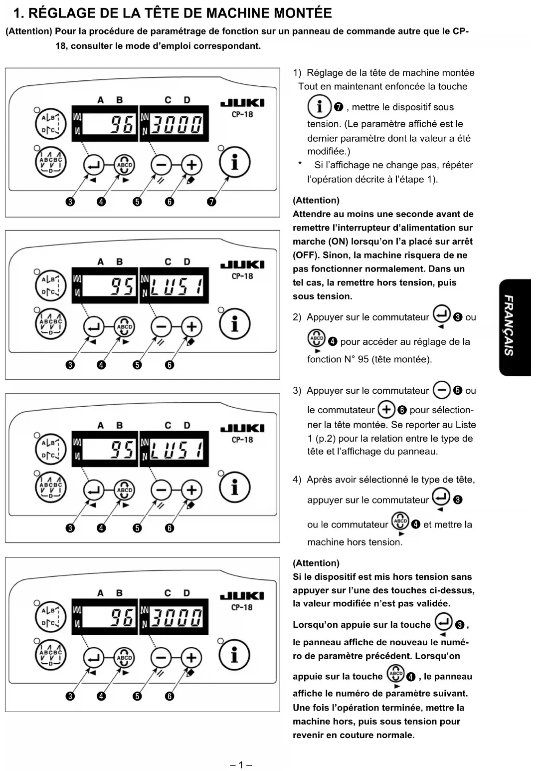 (Attention) Pour la procédure de paramétrage de fonction sur un panneau de commande autre que le CP- 18, consulter le mode d’emploi correspondant.