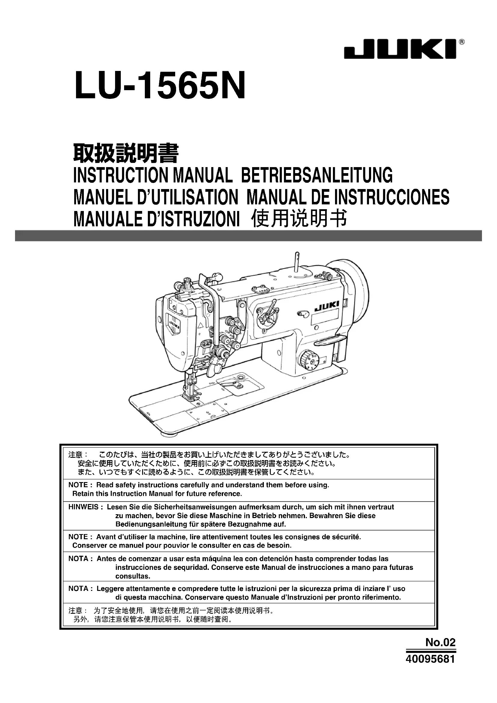 Retrouvez gratuitement la notice de l'appareil LU1565N JUKI au format PDF.