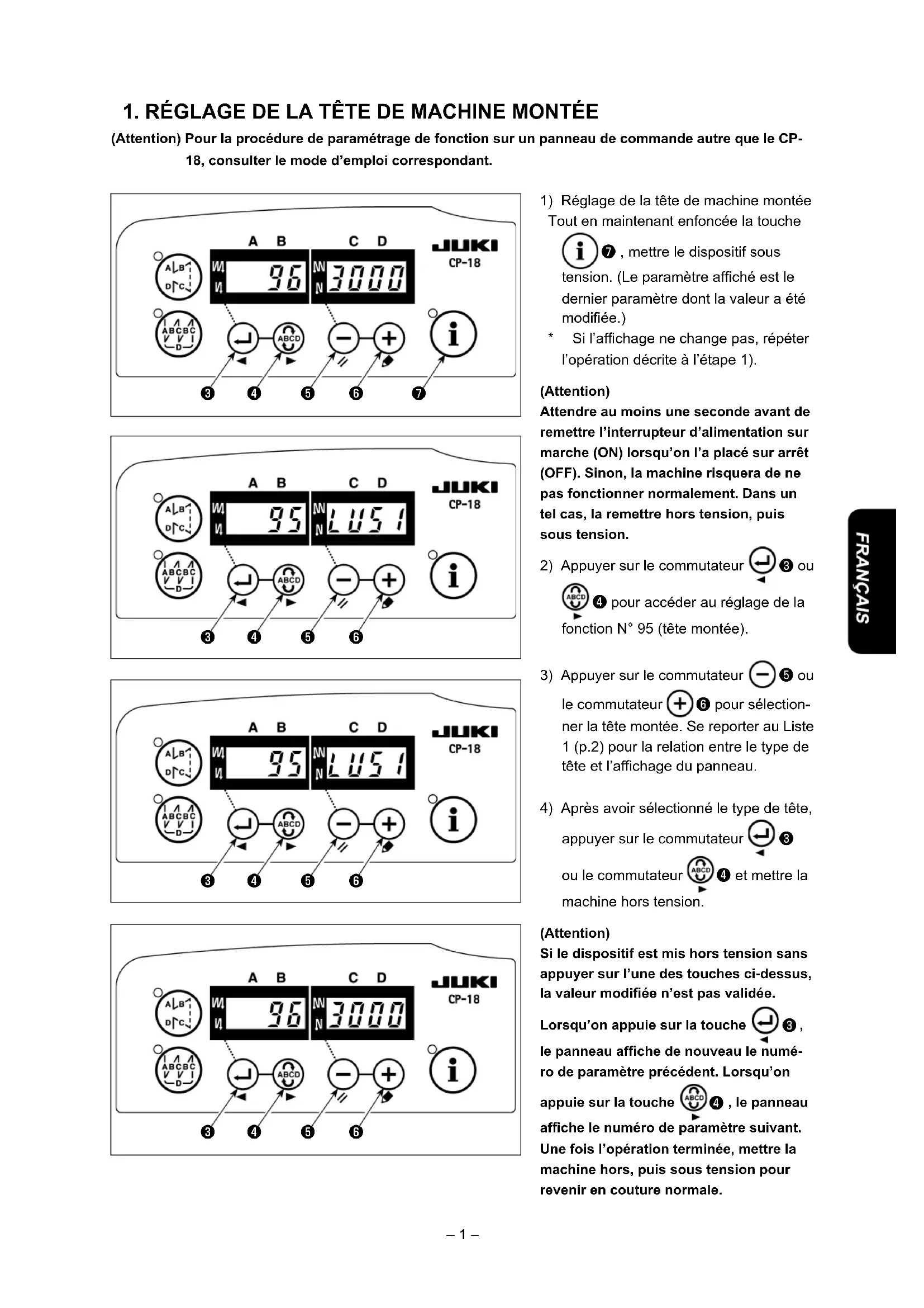 (Attention) Pour la procédure de paramétrage de fonction sur un panneau de commande autre que le CP- 18, consulter le mode d’emploi correspondant.