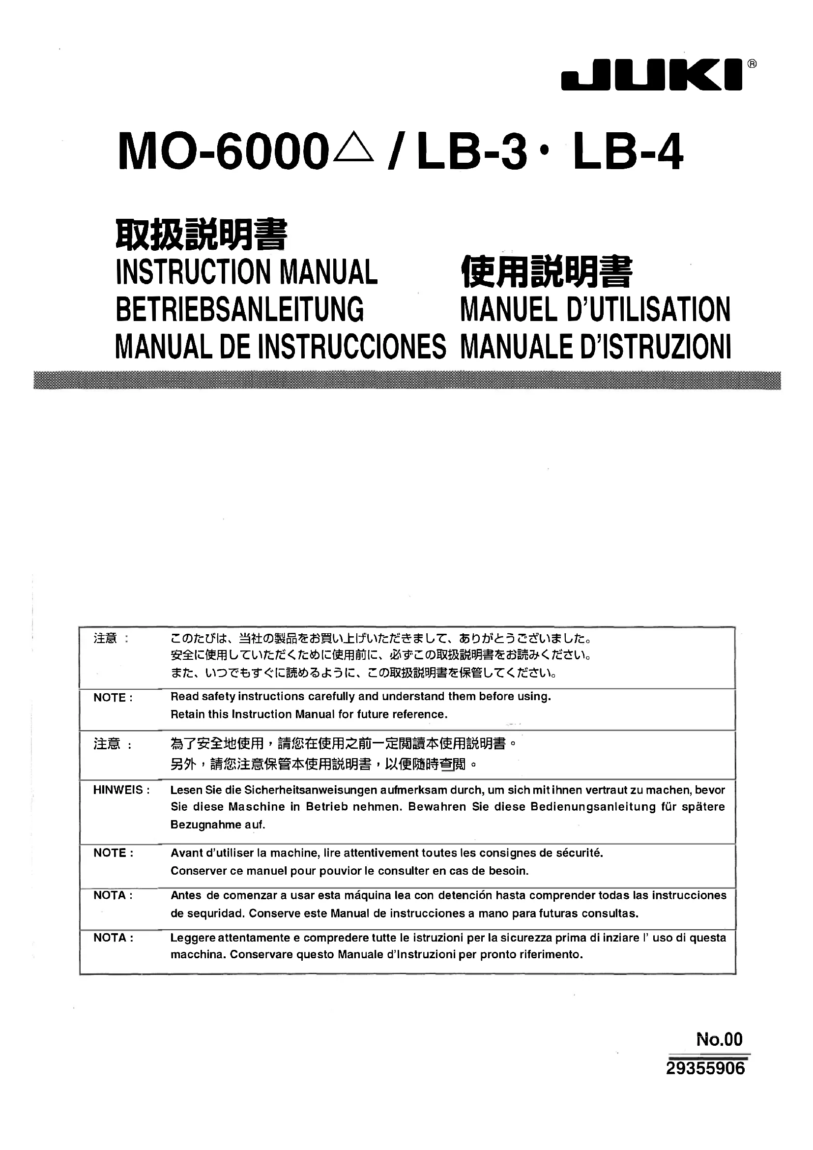 Retrouvez gratuitement la notice de l'appareil LB4 JUKI au format PDF.