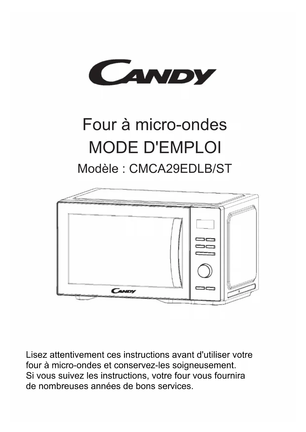 CMCA29EDLBST - Micro-ondes CANDY - Notice d'utilisation et mode d'emploi gratuit