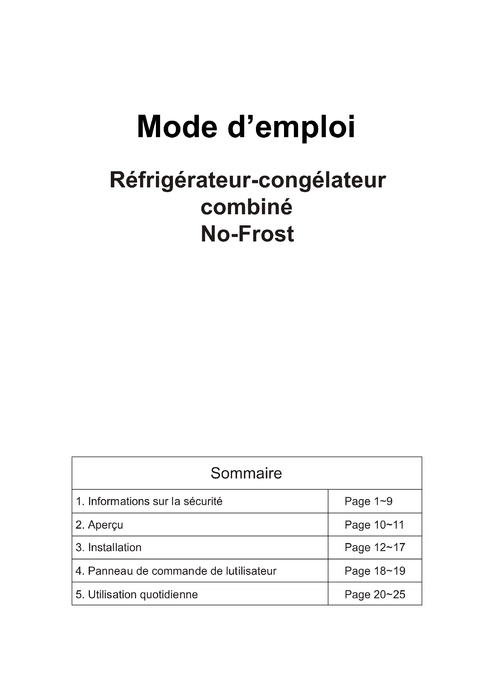 1. Informations sur la sécurité Page 1~9