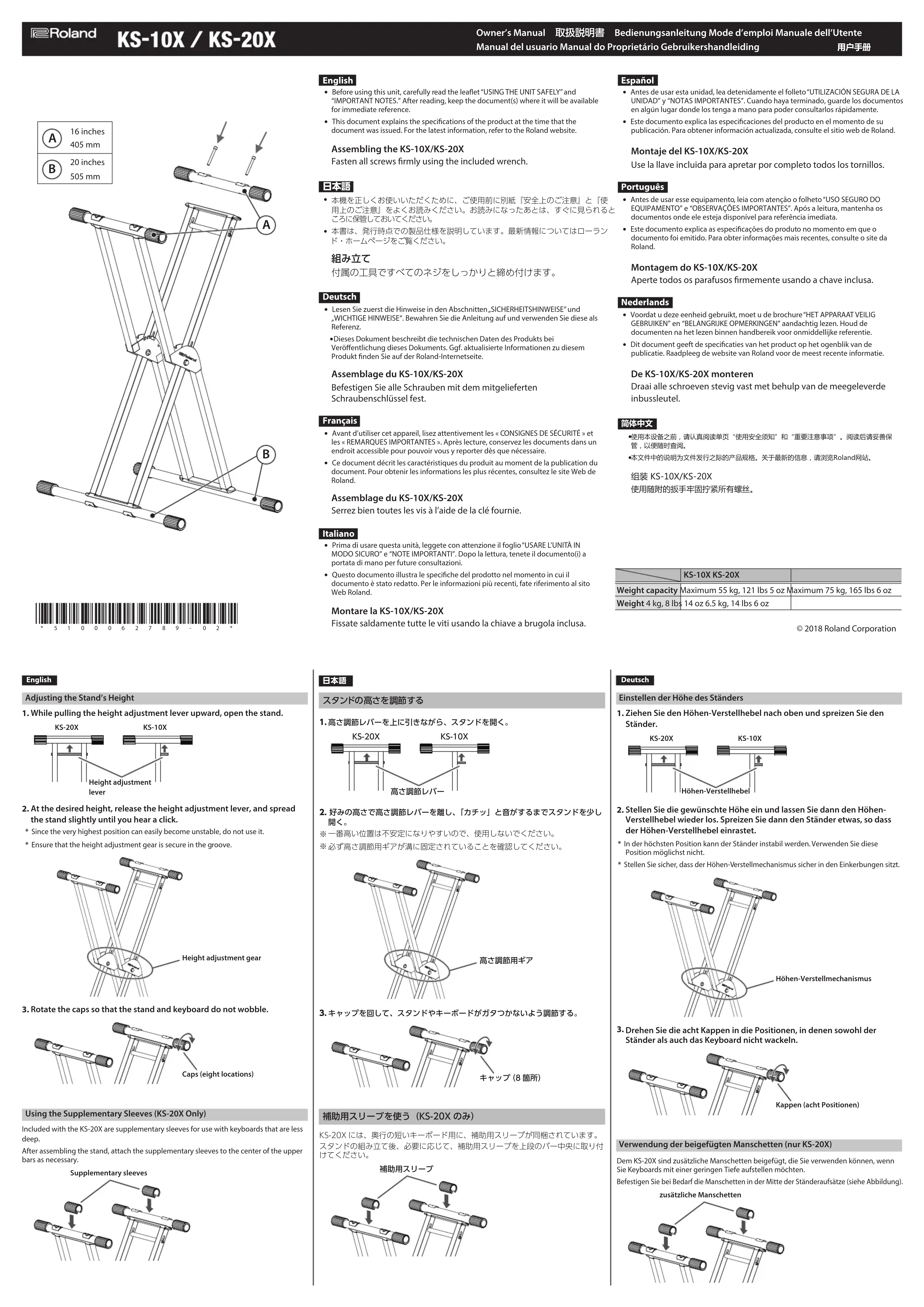 KS10X - Support pour clavier musical ROLAND - Notice d'utilisation et mode d'emploi gratuit