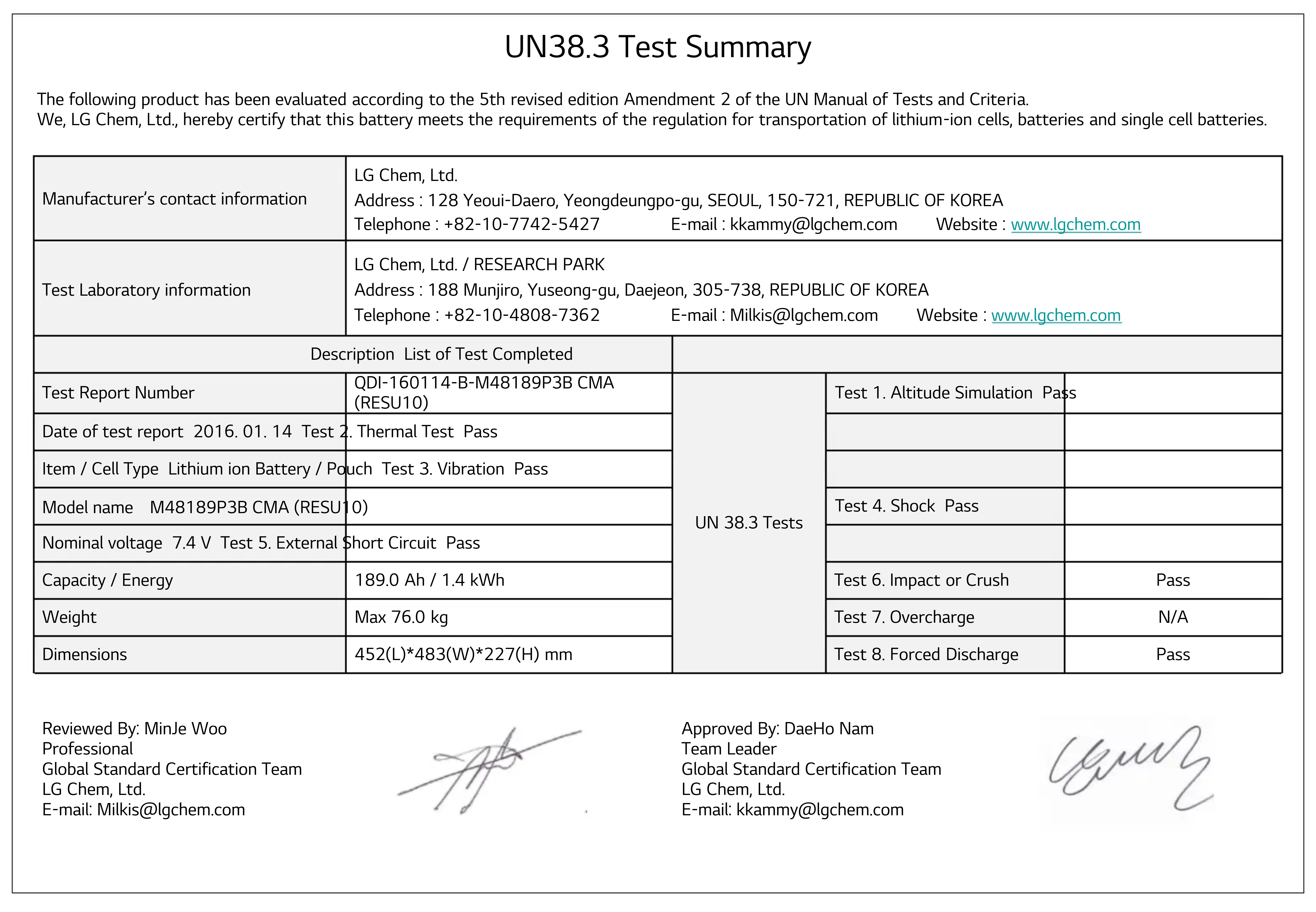 RESU10 - Batterie LG - Notice d'utilisation et mode d'emploi gratuit