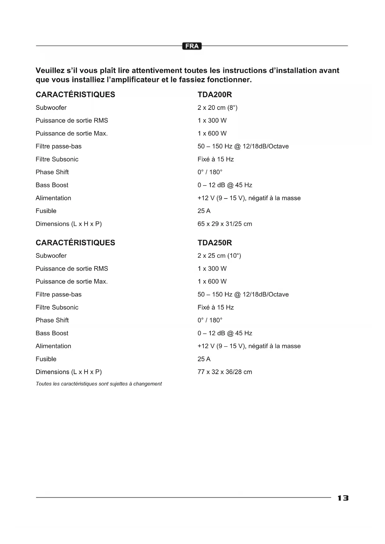 MODE D'EMPLOI Titan TDA200R Hifonics