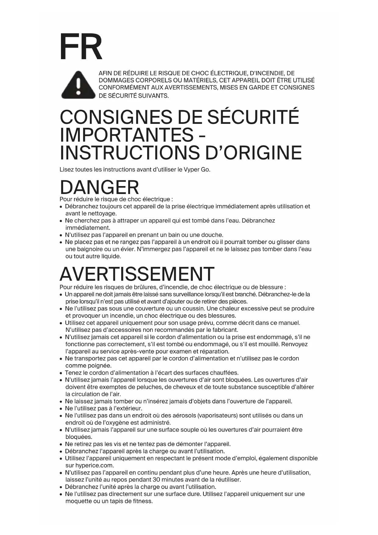 - Utilisez l’appareil uniquement en respectant le présent mode d’emploi, également disponible sur hyperice.com.