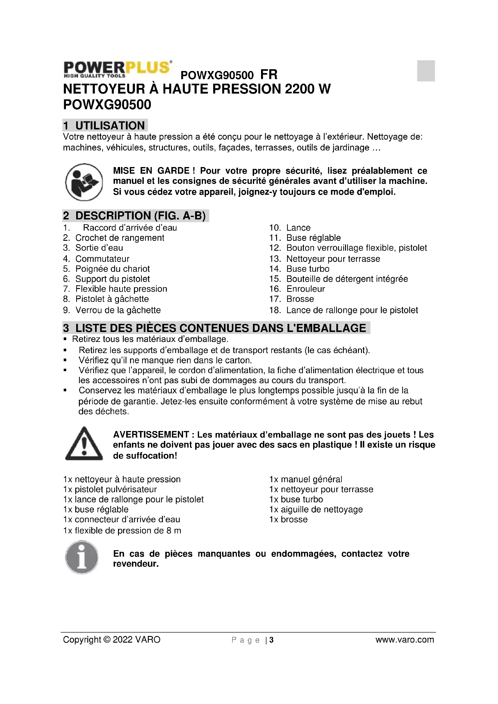 3 LISTES DES PIECES CONTENUES DANS L'EMBALLAGE 3