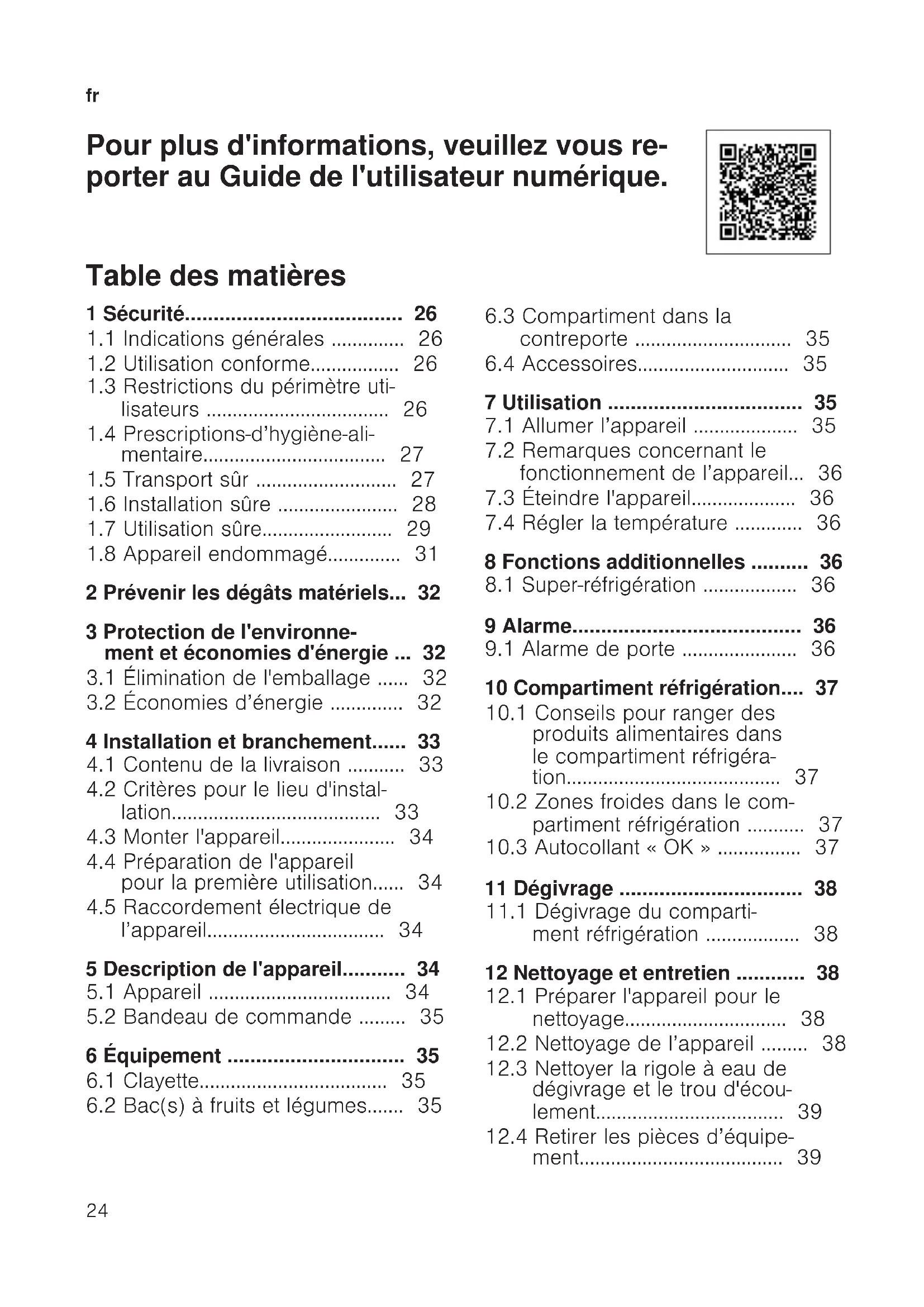Pour plus d'informations, veuillez vous re- porter au Guide de l'utilisateur numérique. Table des matières 1 Sécurité......................................26