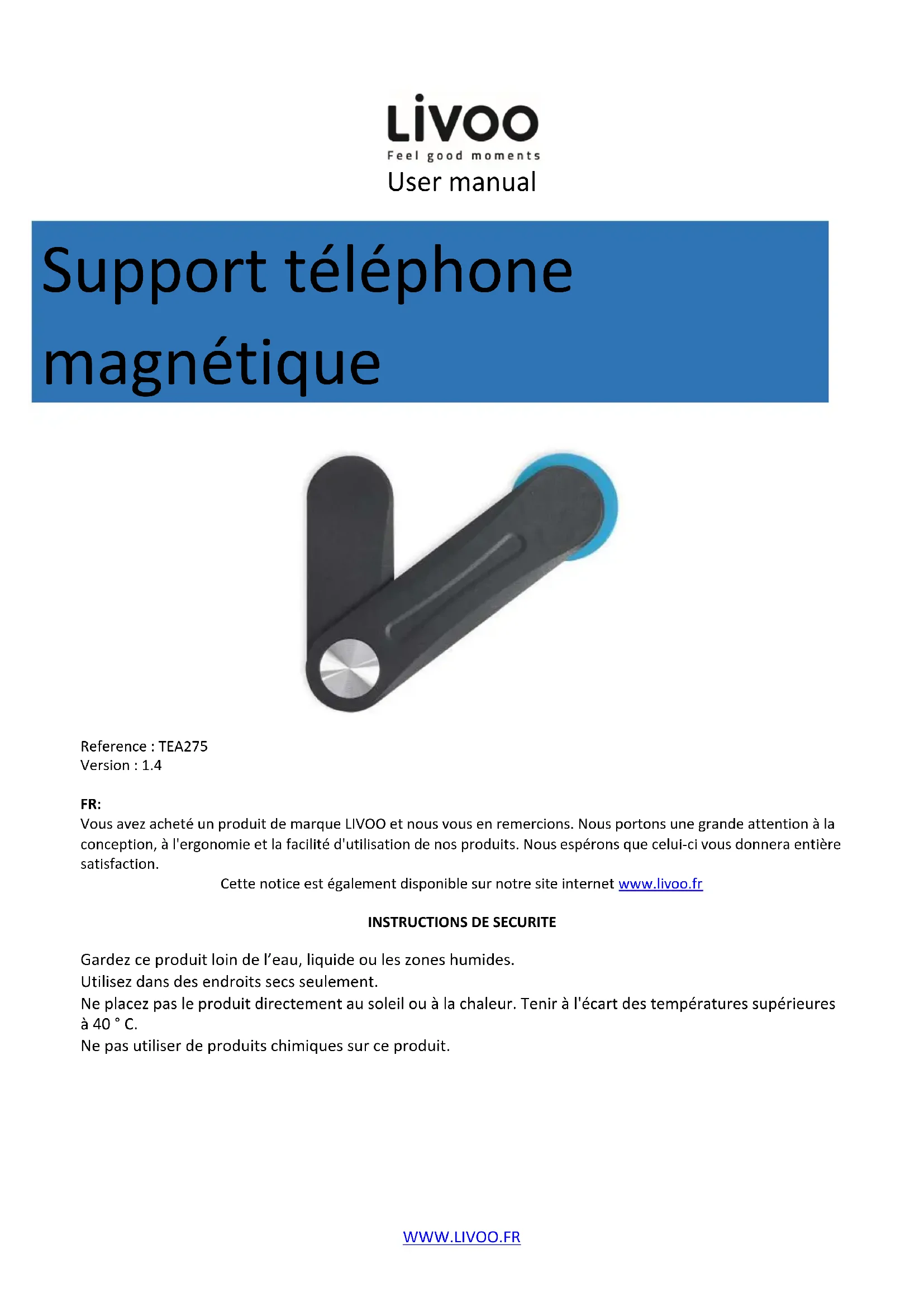 TEA275 - Autres accessoires de téléphones LIVOO - Notice d'utilisation et mode d'emploi gratuit