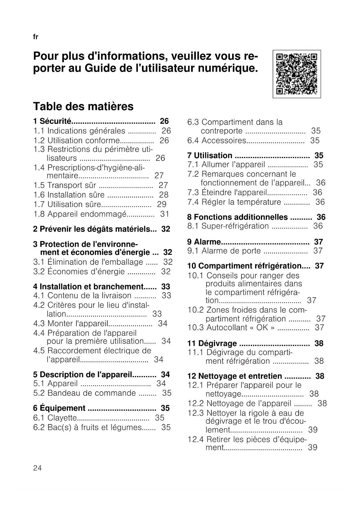 Pour plus d'informations, veuillez vous re- porter au Guide de l'utilisateur numérique. Table des matières 1 Sécurité......................................26