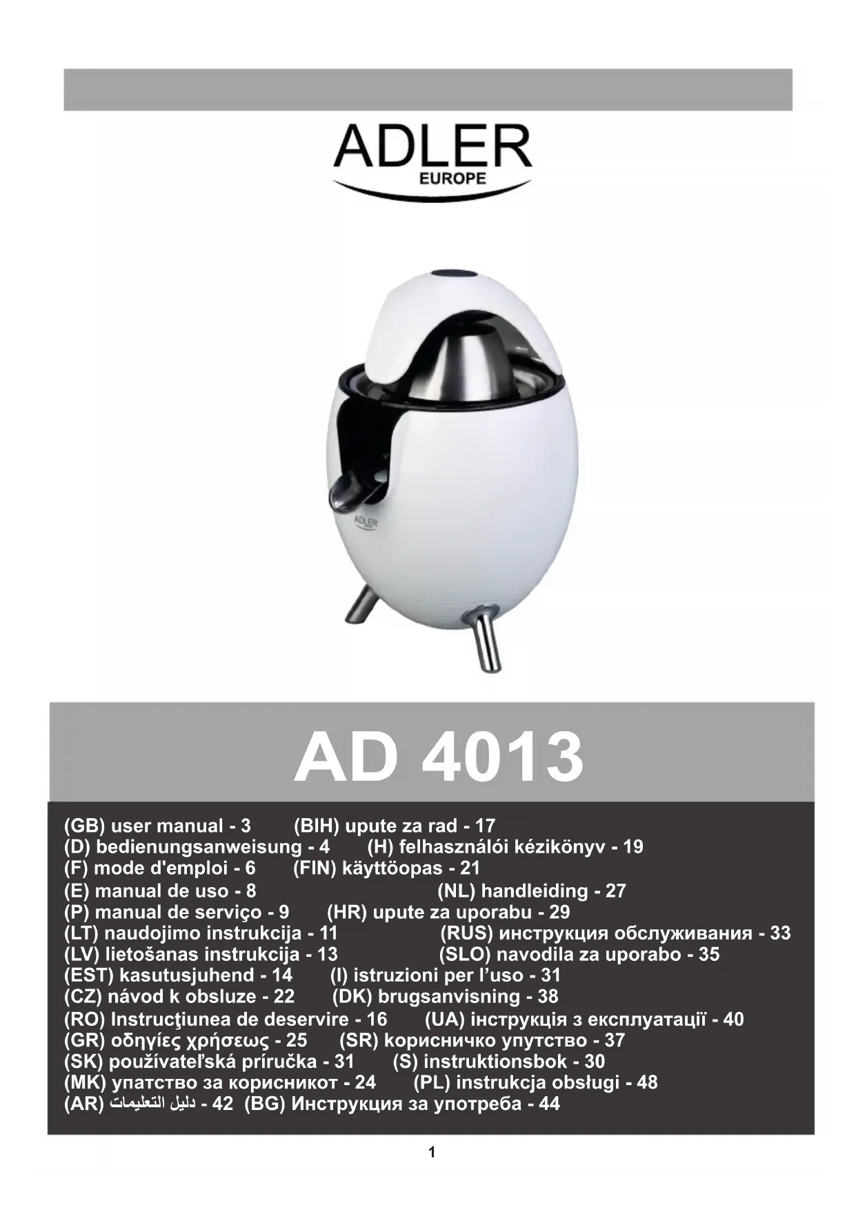 AD 4013 - Extracteur de jus ADLER - Notice d'utilisation et mode d'emploi gratuit