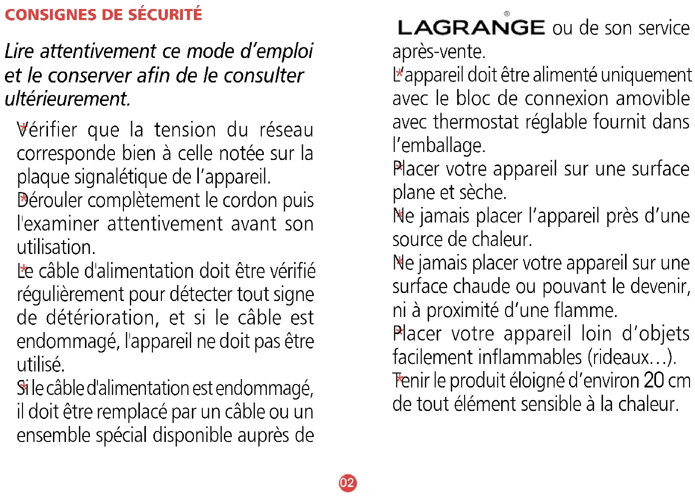 Retrouvez gratuitement la notice de l'appareil Equilibre LAGRANGE au format PDF.