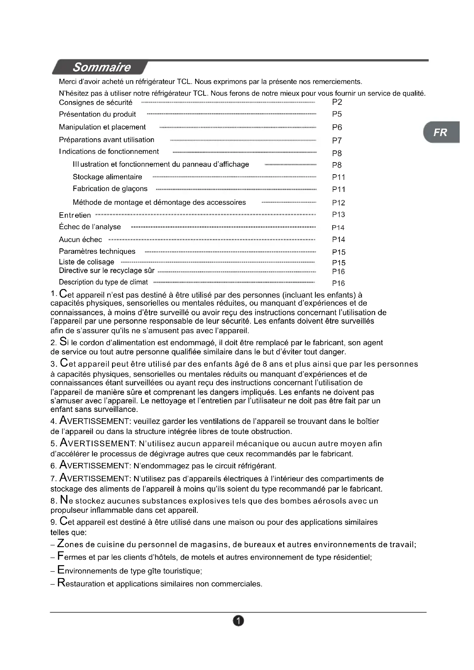 Merci d'avoir acheté un réfrigerateur TCL. Nous exprimons par la présente nos remerciements.