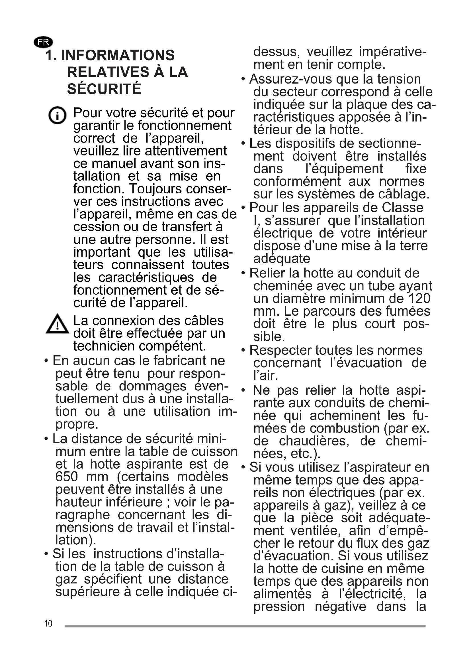 - Ne jamais laisser un feu vif allumé sous la hotte lorsque celle-ci est en fonction.