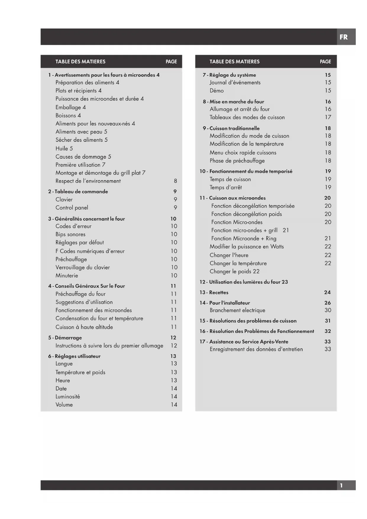 Codes d’erreur 10 Bips sonores 10 Réglages par défaut 10 F Codes numériques d’erreur 10 Préchauffage 10 Verrouillage du clavier 10 Minuterie 10