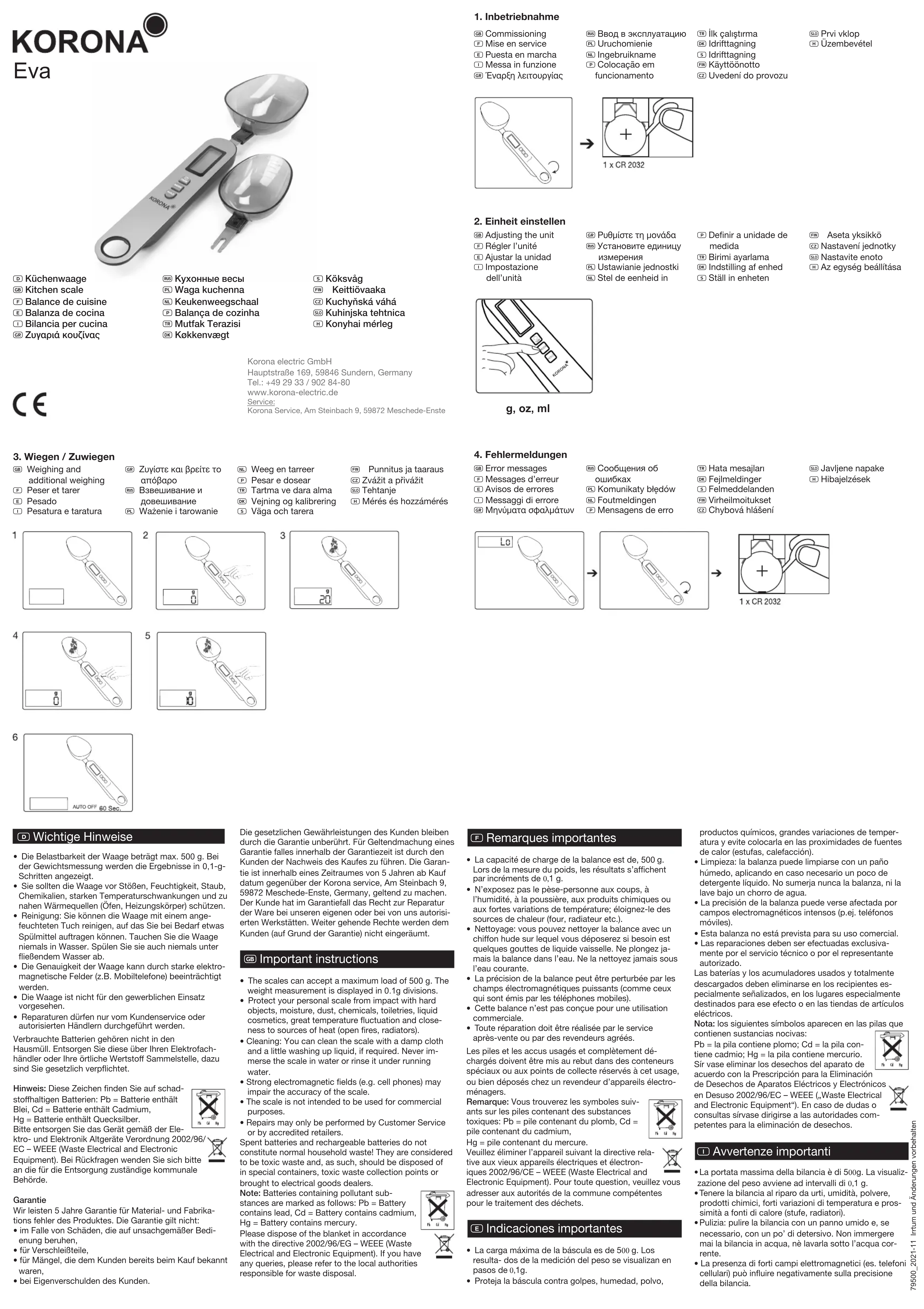 Eva - Balances de cuisine KORONA - Notice d'utilisation et mode d'emploi gratuit