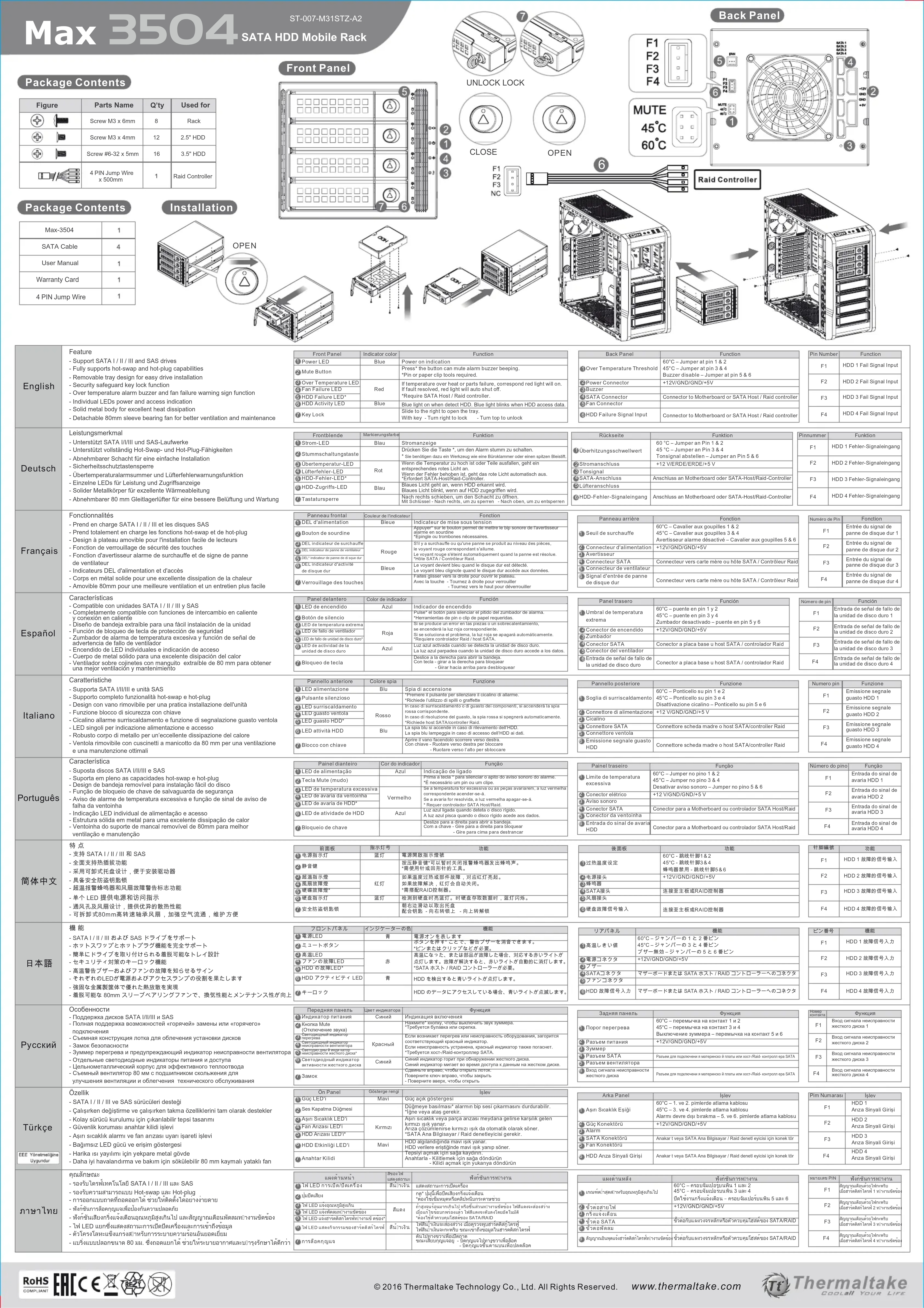 Pour installer le THERMALTAKE Max 3504, commencez par déballer le produit et vérifiez que toutes les pièces sont présentes. Suivez le manuel d'utilisation fourni pour assembler les différentes parties. Assurez-vous de placer les composants dans le bon ordre et de bien les fixer.
