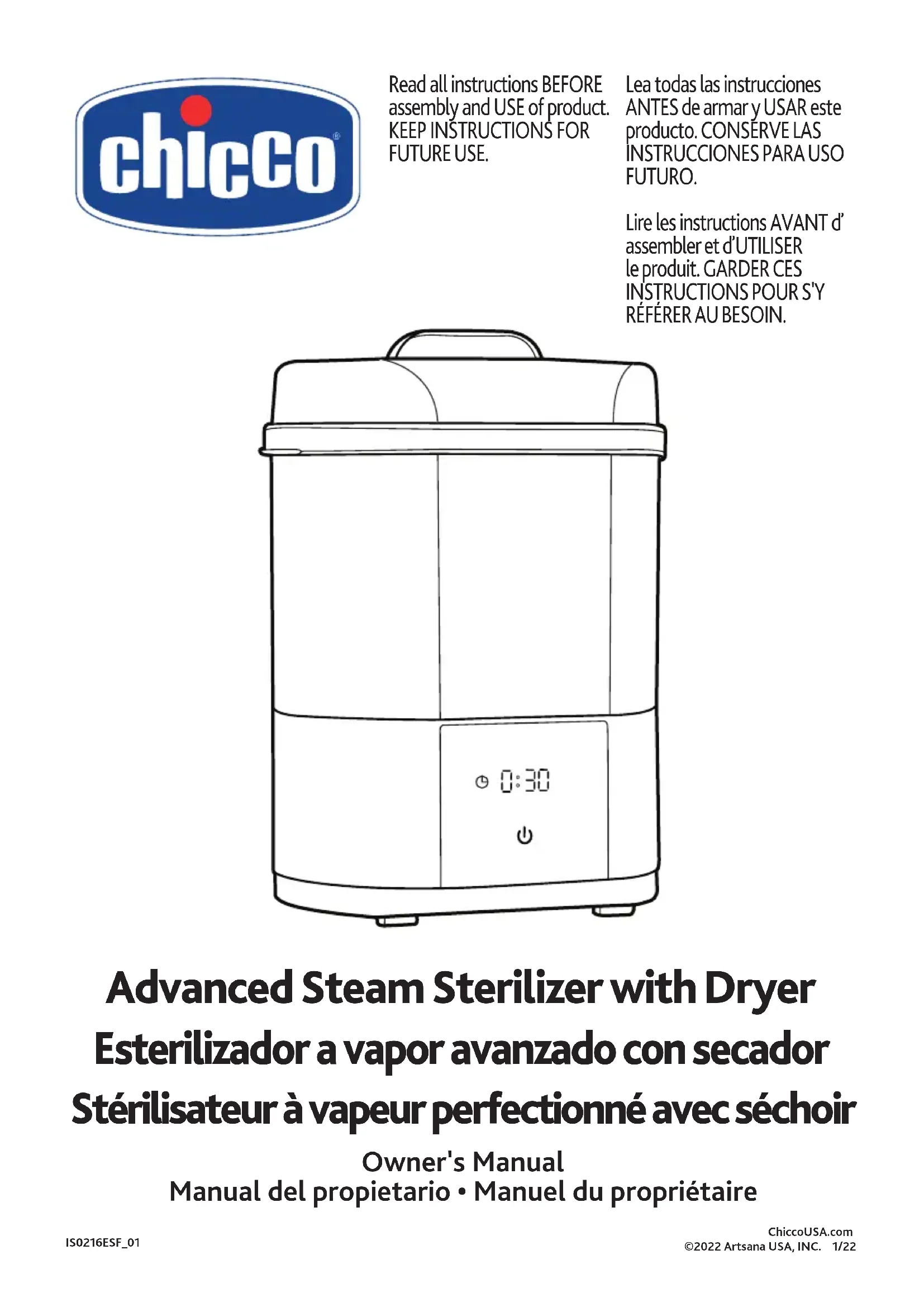Advanced Steam Sterilizer with Dryer - Stérillisateur de bouteille CHICCO - Notice d'utilisation et mode d'emploi gratuit