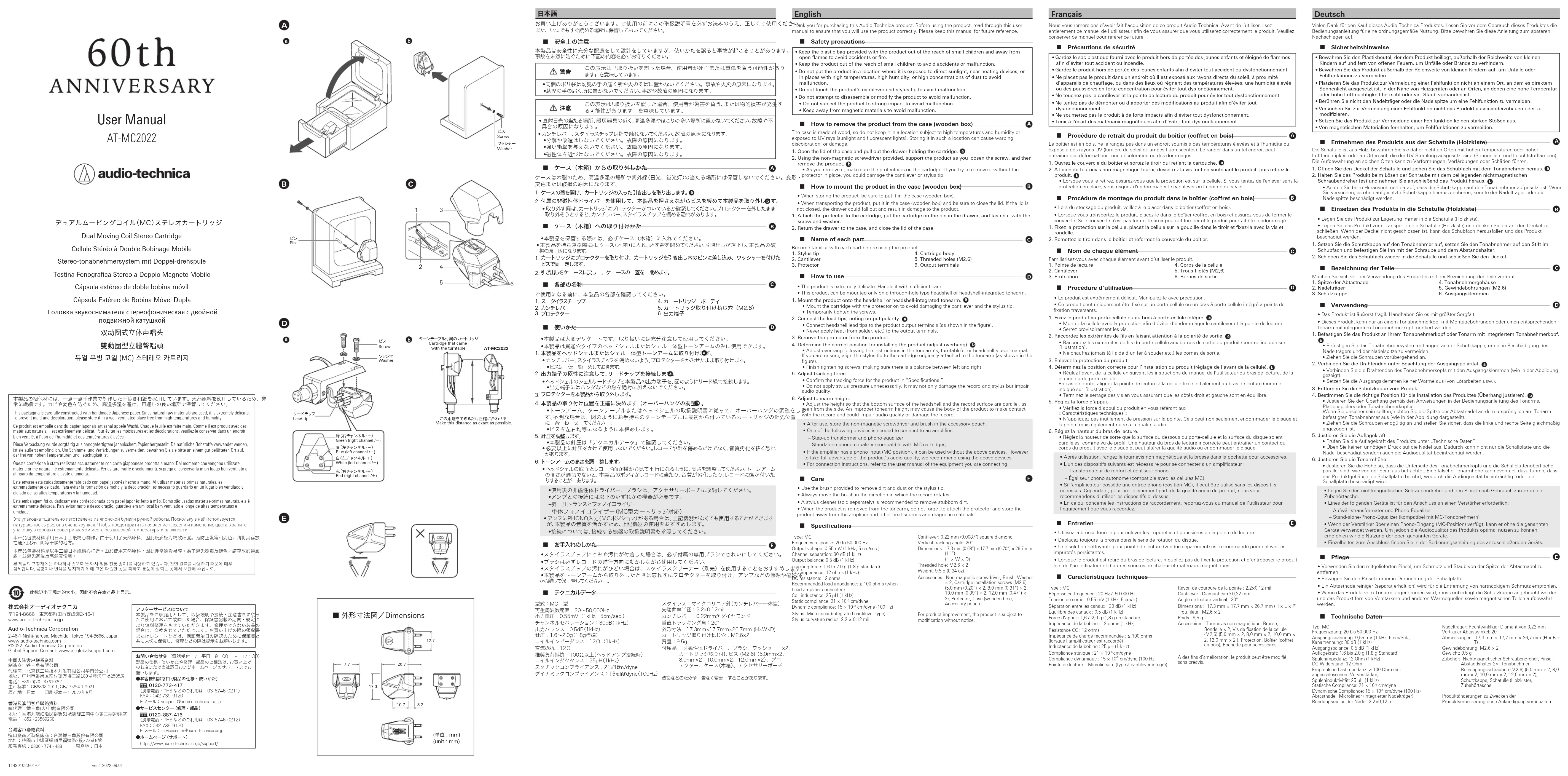 Retrouvez gratuitement la notice de l'appareil ATMC2022 AUDIO TECHNICA au format PDF.