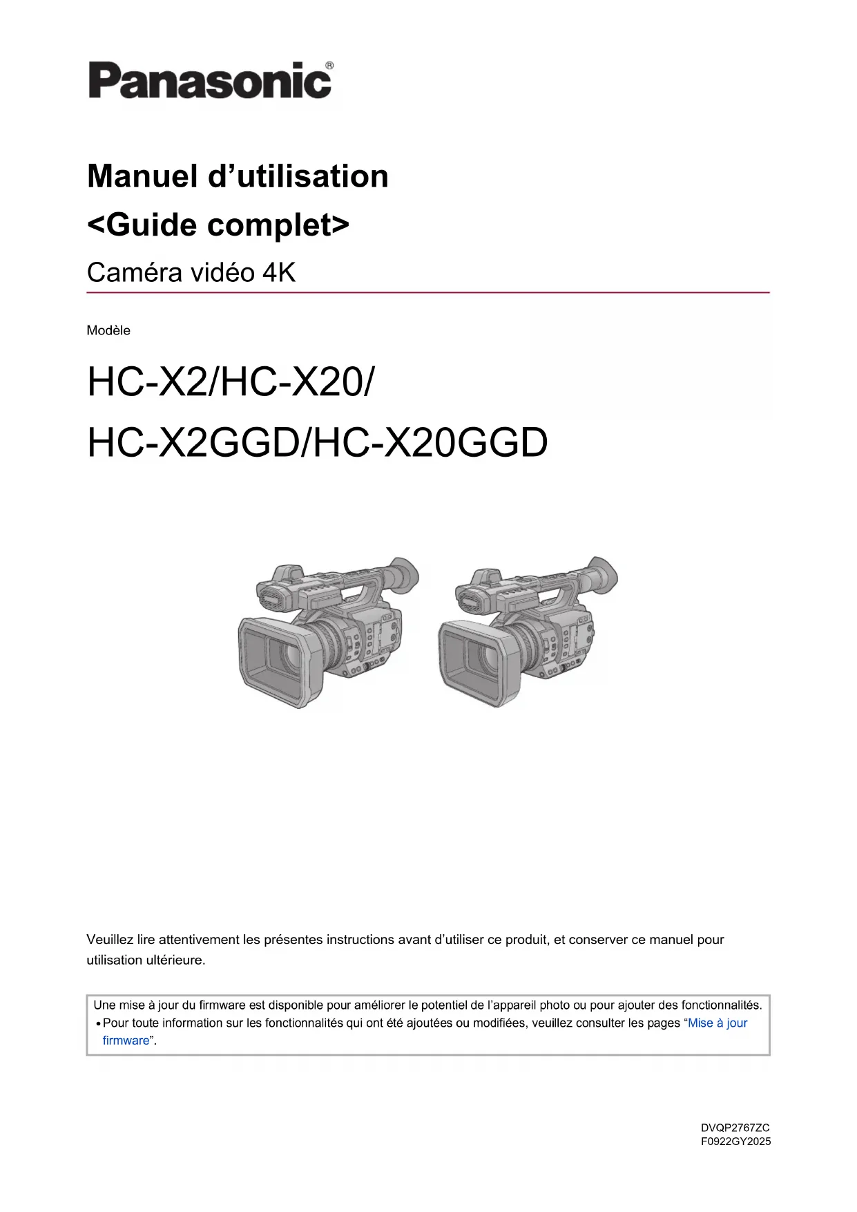 Manuel d’utilisation <Guide complet> Caméra vidéo 4K Modèle HC-X2/HC-X20/