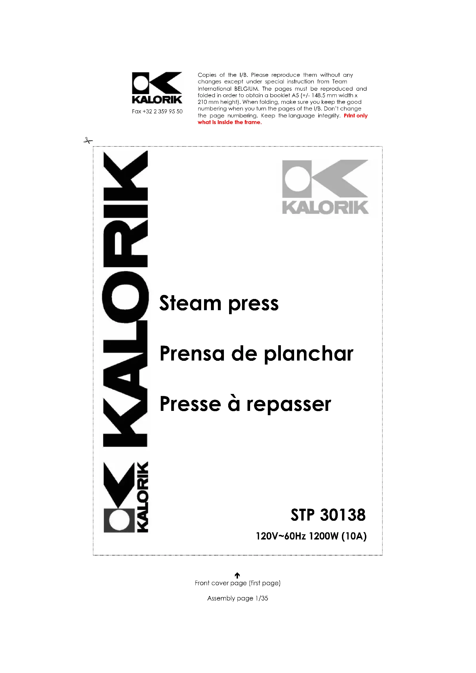 Steam press Prensa de planchar Presse à repasser STP 30138
