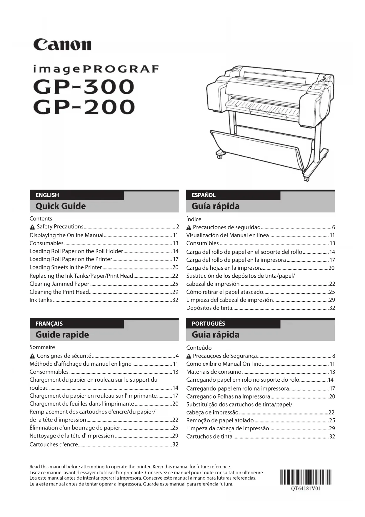 Retrouvez gratuitement la notice de l'appareil imagePROGRAF GP200 CANON au format PDF.