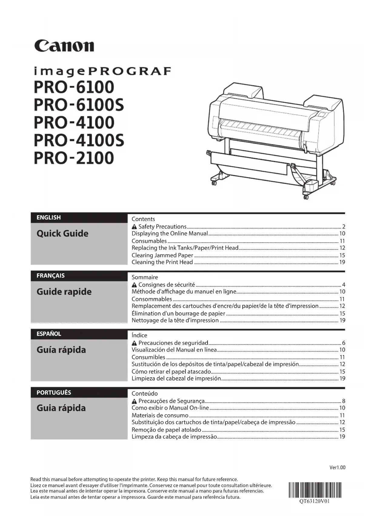 Retrouvez gratuitement la notice de l'appareil imagePROGRAF PRO6100S CANON au format PDF.