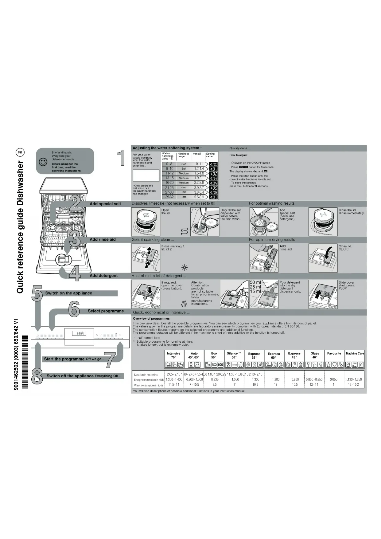 | Options de lavage | Départ différé, fonction demi-charge |
