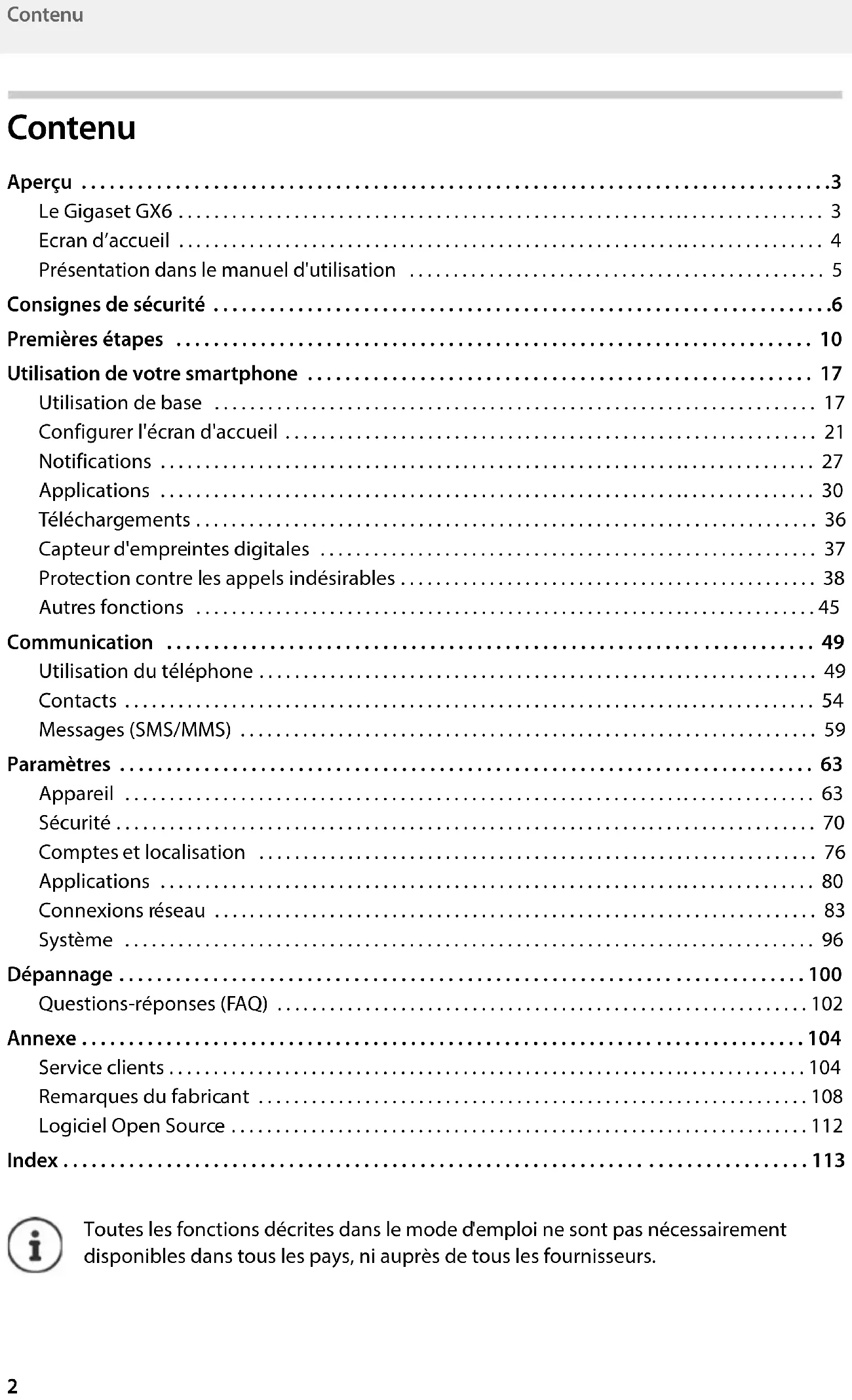 Toutes les fonctions décrites dans le mode d 'emploi ne sont pas nécessairement disponibles dans tous les pays, ni auprès de tous les fournisseurs.Gigaset GX6 / LUG FR fr / A31008-XXXXX-XXXX-X-XXXX / overview.fm / 12/7/22 Template Module, Version 2.1, 11.08.2020 / Template Basiseinstellungen: Version 3.1 - 07.07.2020 Le Gigaset GX6
