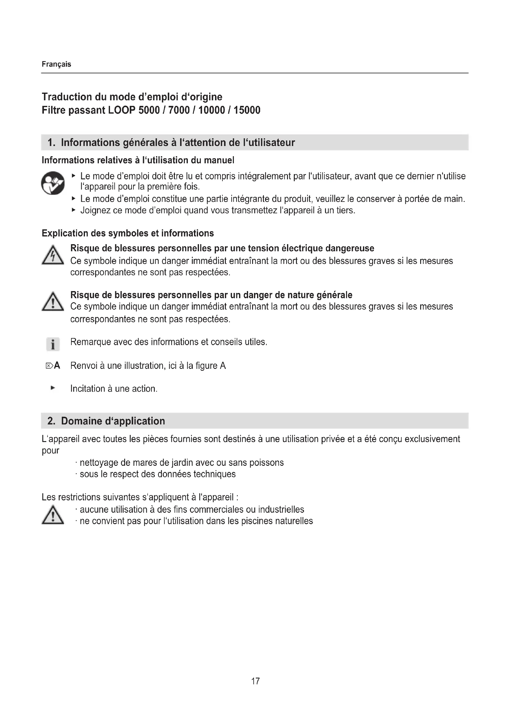 Français Traduction du mode d’emploi d‘origine Filtre passant LOOP 5000 / 7000 / 10000 / 15000