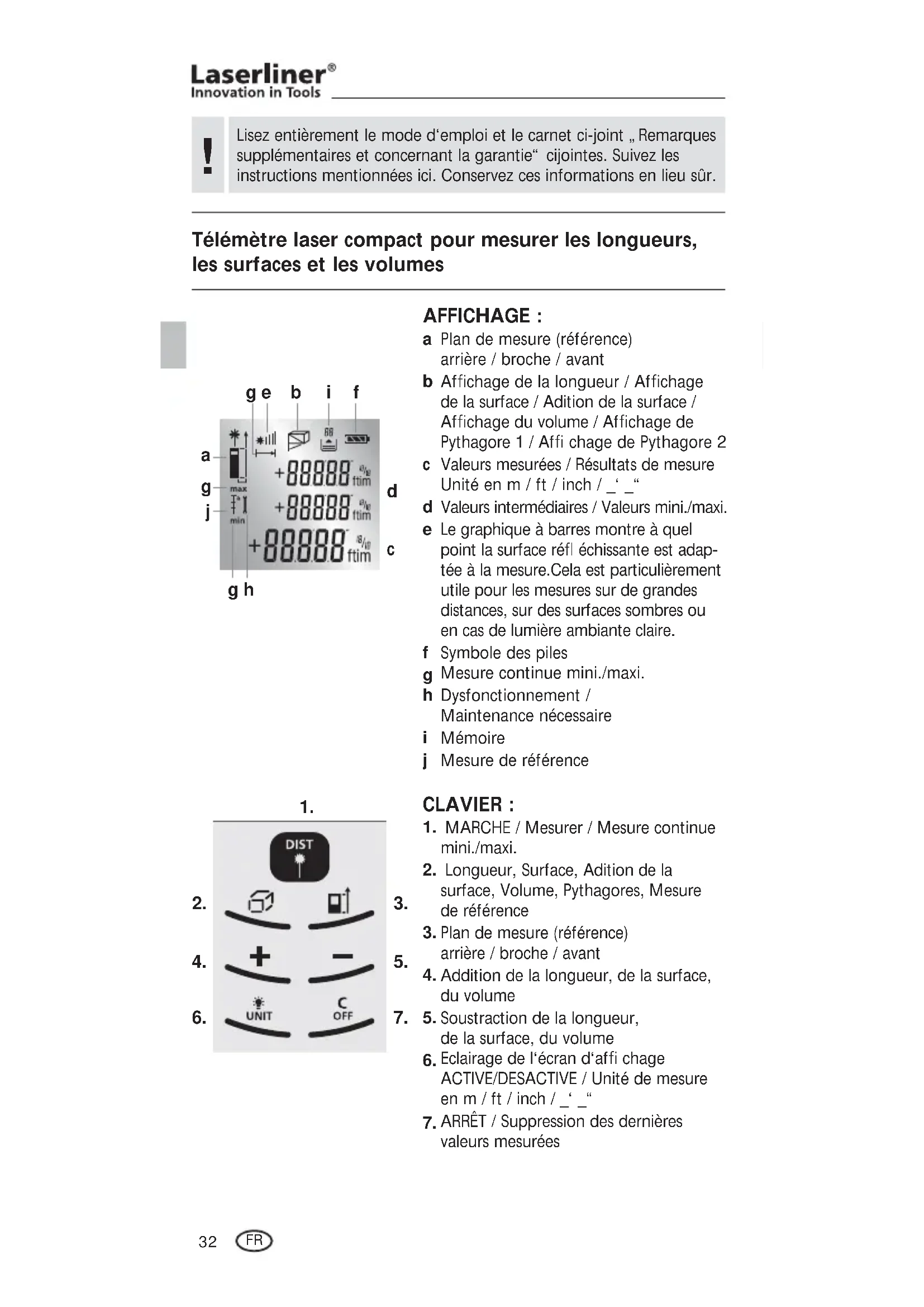 MODE D'EMPLOI DistanceMaster Pocket Laserliner