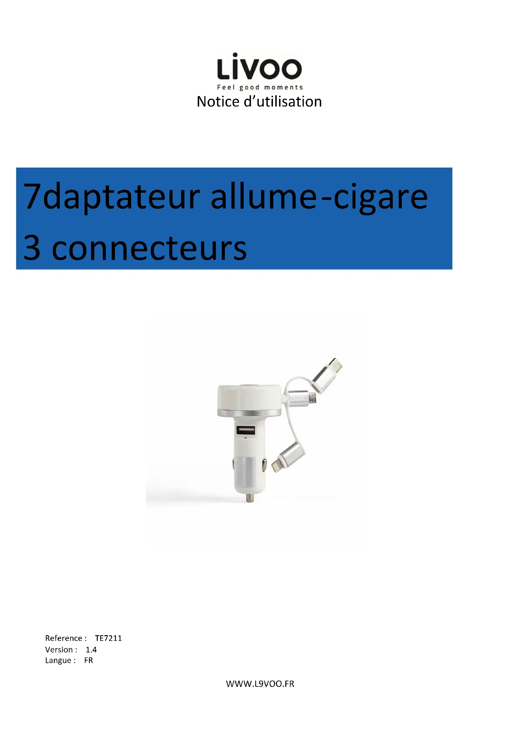 TEA211 - Chargeur allume-cigare LIVOO - Notice d'utilisation et mode d'emploi gratuit