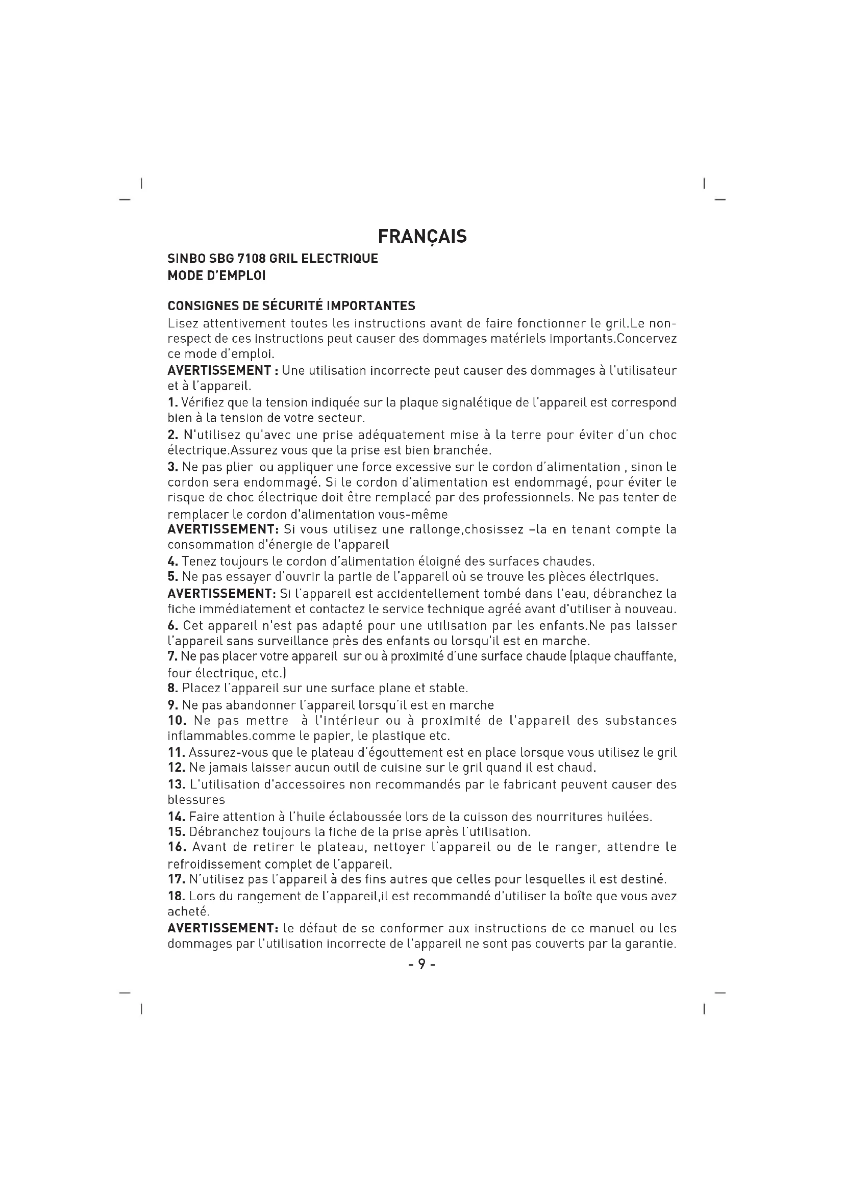 SBG 7108 - Plaque de grill SINBO - Notice d'utilisation et mode d'emploi gratuit