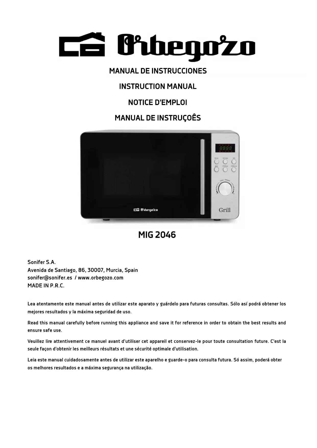 MIG 2046 - Four à micro-ondes Orbegozo - Notice d'utilisation et mode d'emploi gratuit