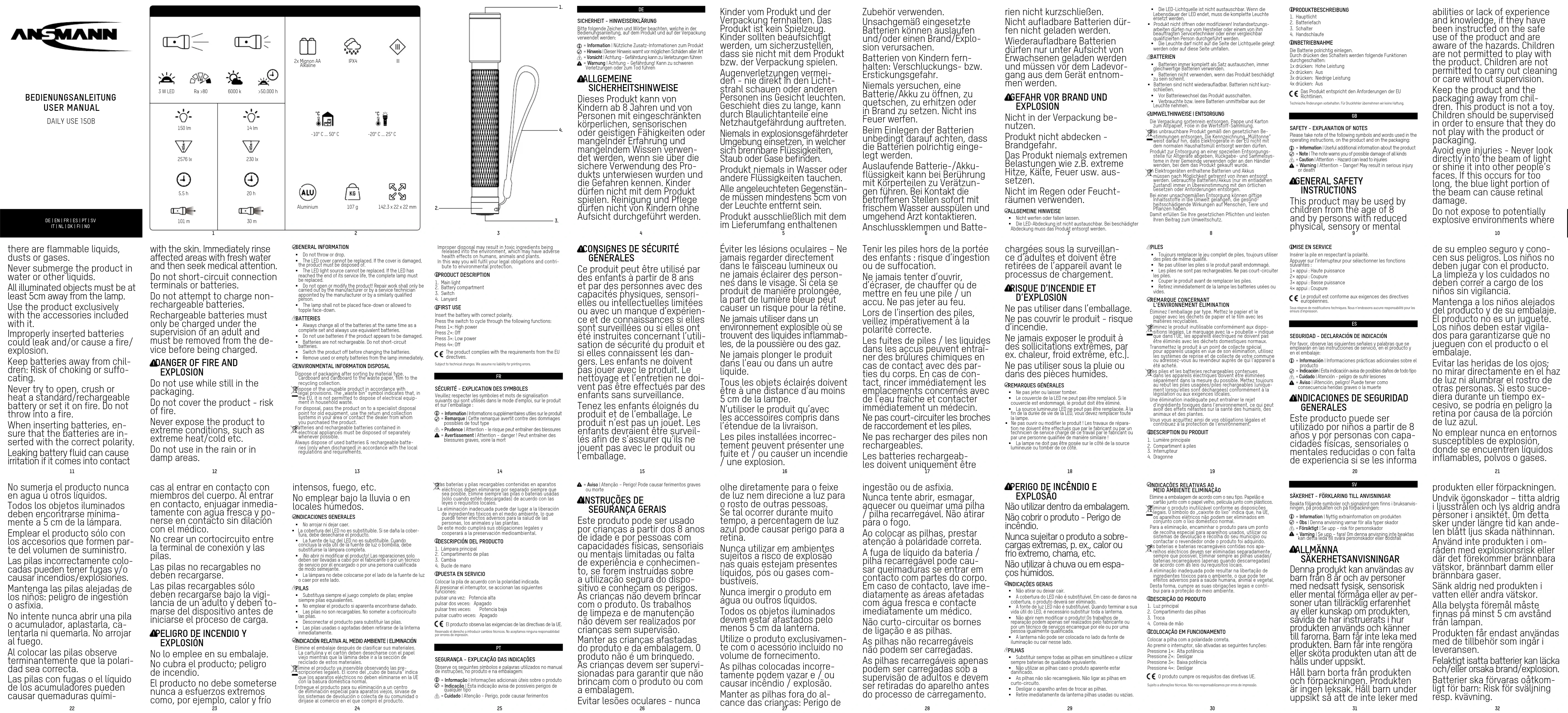 Daily Use 150B - Lampe de poche ANSMANN - Notice d'utilisation et mode d'emploi gratuit