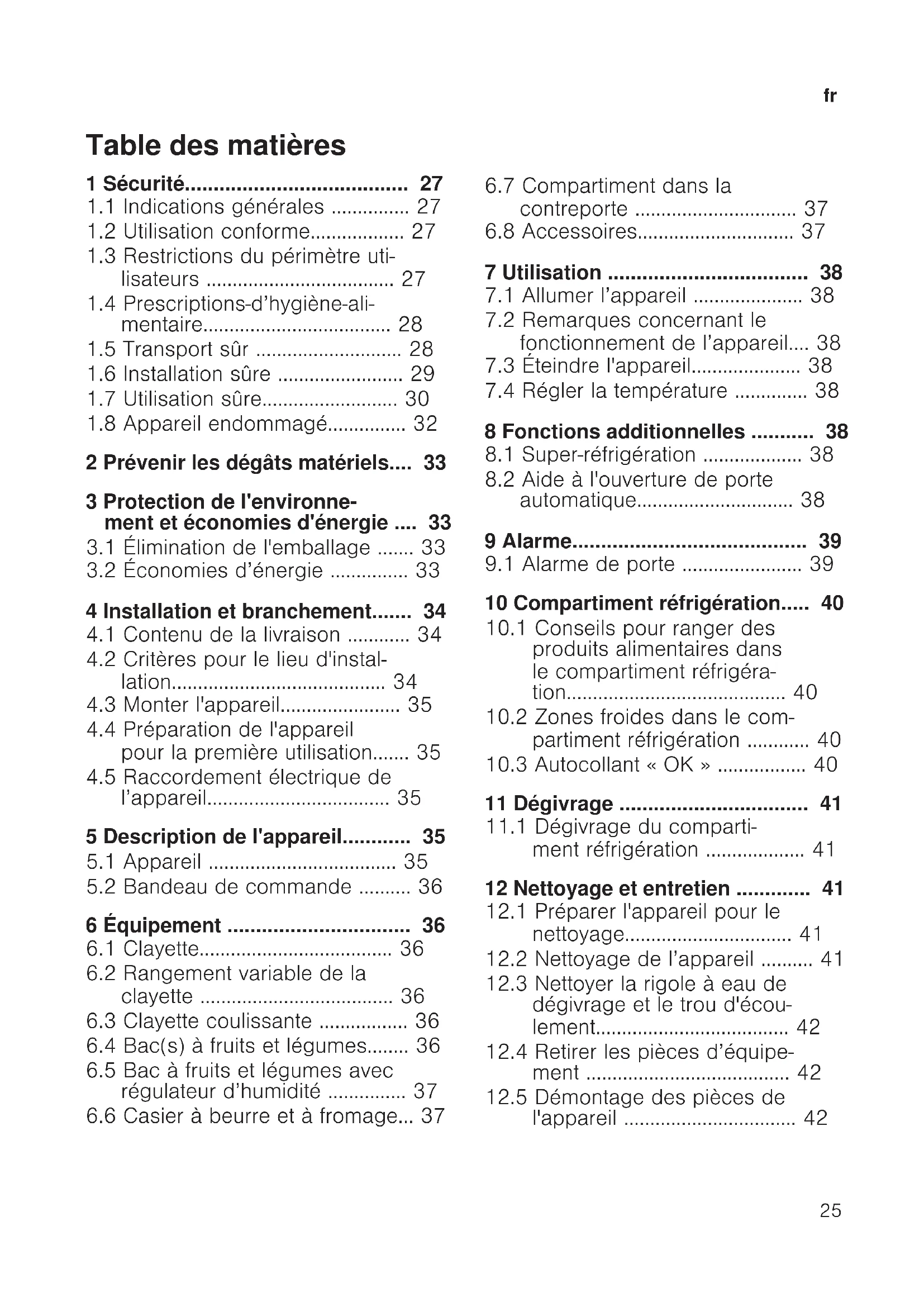 ment réfrigération ...................41 12 Nettoyage et entretien .............41