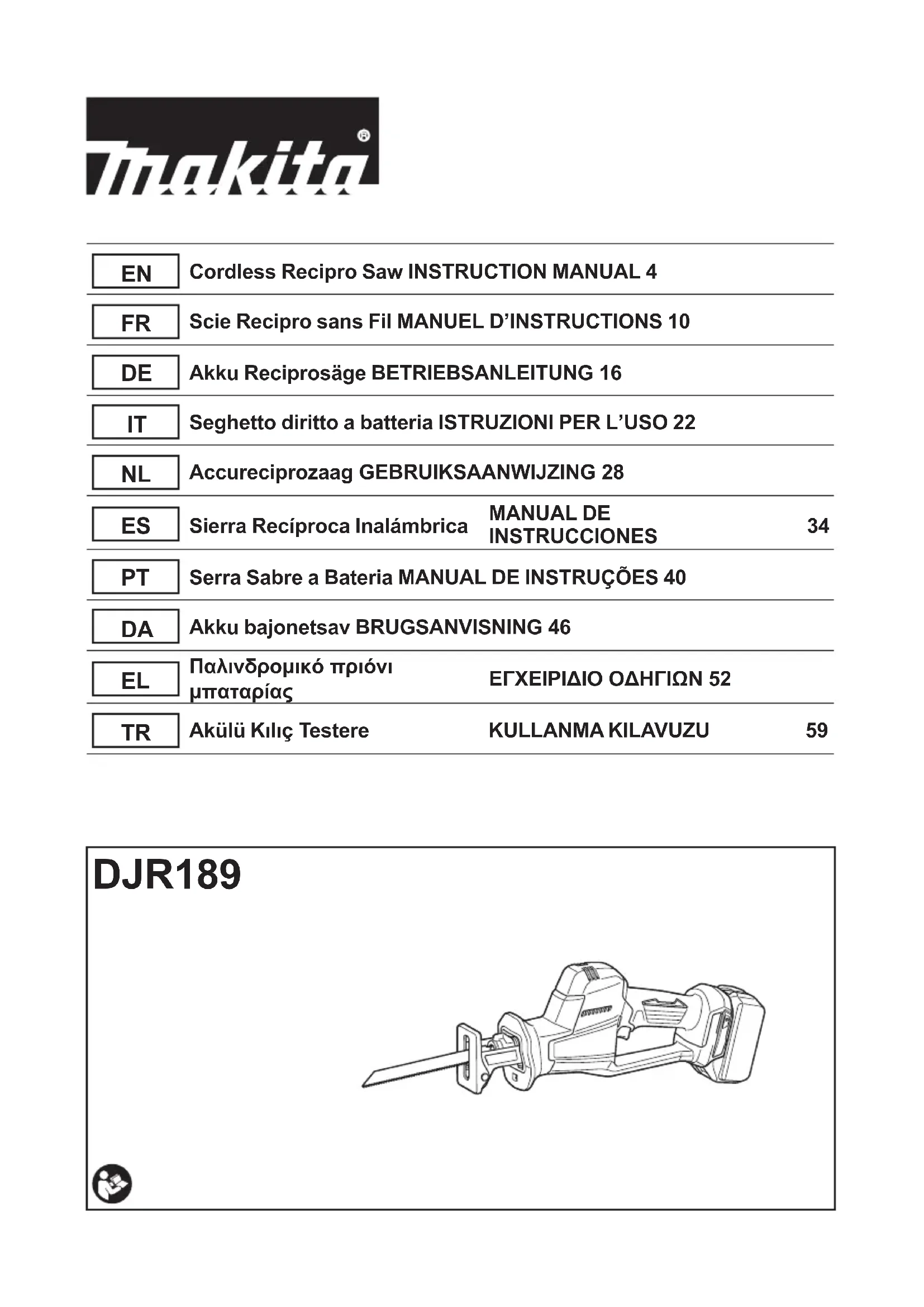 Retrouvez gratuitement la notice de l'appareil DJR189 MAKITA au format PDF.