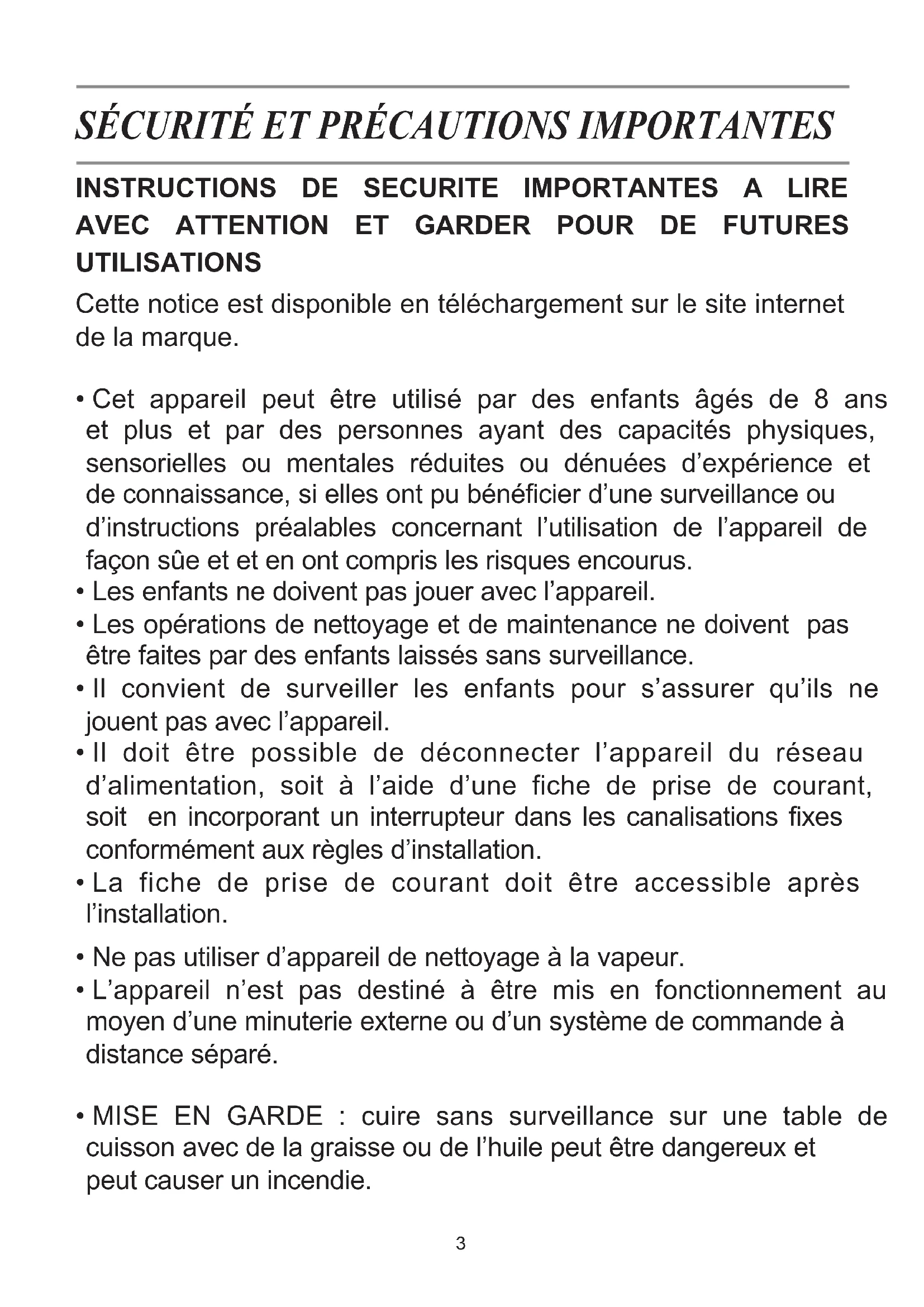 AVEC ATTENTION ET GARDER POUR DE FUTURES UTILISATIONS Cette notice est disponible en téléchargement sur le site internet de la marque.