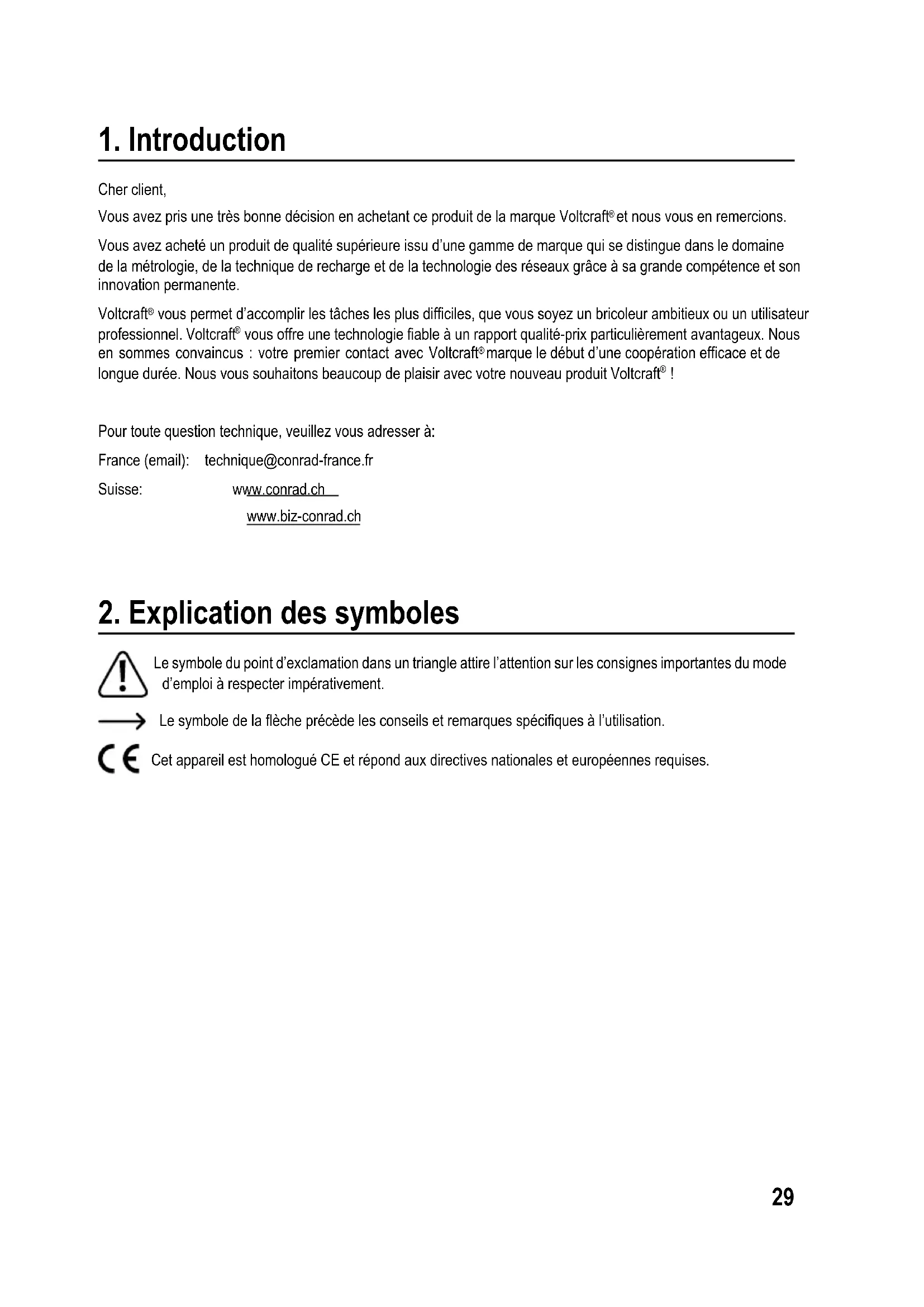 et nous vous en remercions. Vousavezachetéunproduitdequalitésupérieureissud’unegammedemarquequisedistinguedansledomaine delamétrologie,delatechniquederechargeetdelatechnologiedesréseauxgrâceàsagrandecompétenceetson innovation permanente. Voltcraft