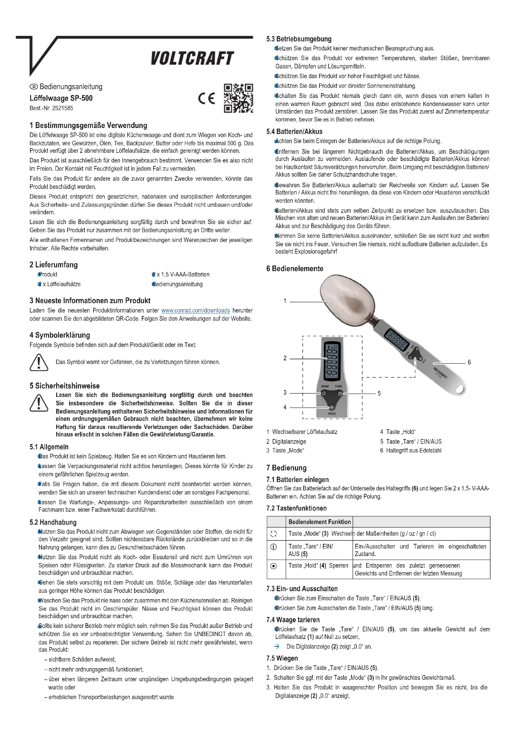 SP500 - Balance VOLTCRAFT - Notice d'utilisation et mode d'emploi gratuit