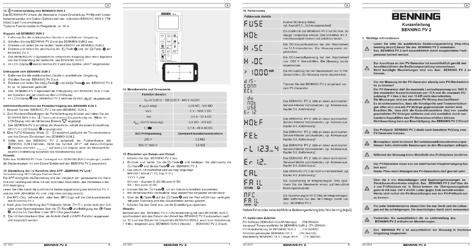 Retrouvez gratuitement la notice de l'appareil PV 2 BENNING au format PDF.