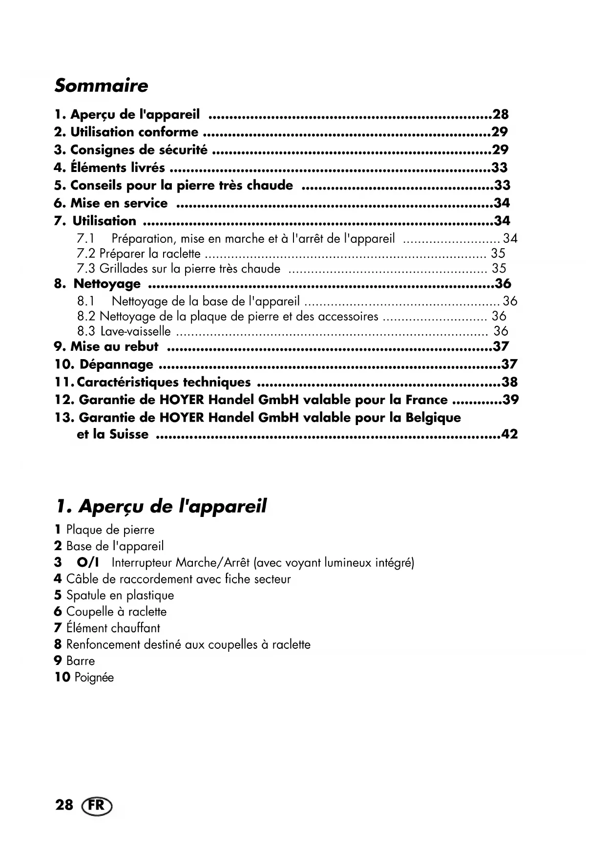 12. Garantie de HOYER Handel GmbH valable pour la France ............39