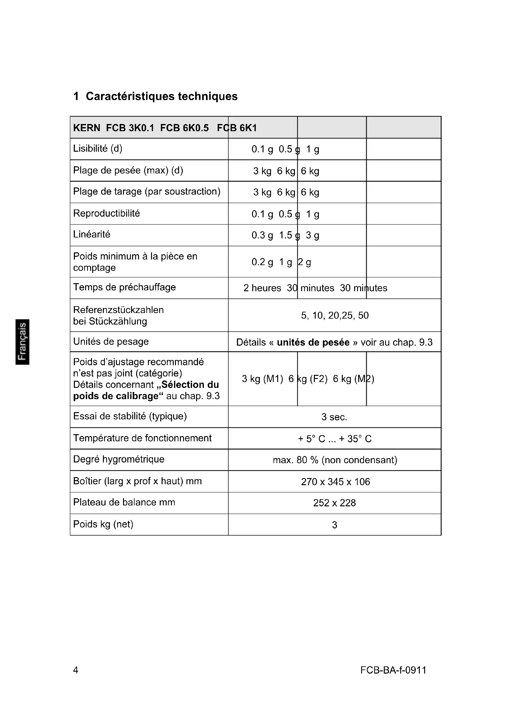 1 Caractéristiques techniques KERN FCB 3K0.1 FCB 6K0.5 FCB 6K1 Lisibilité (d)