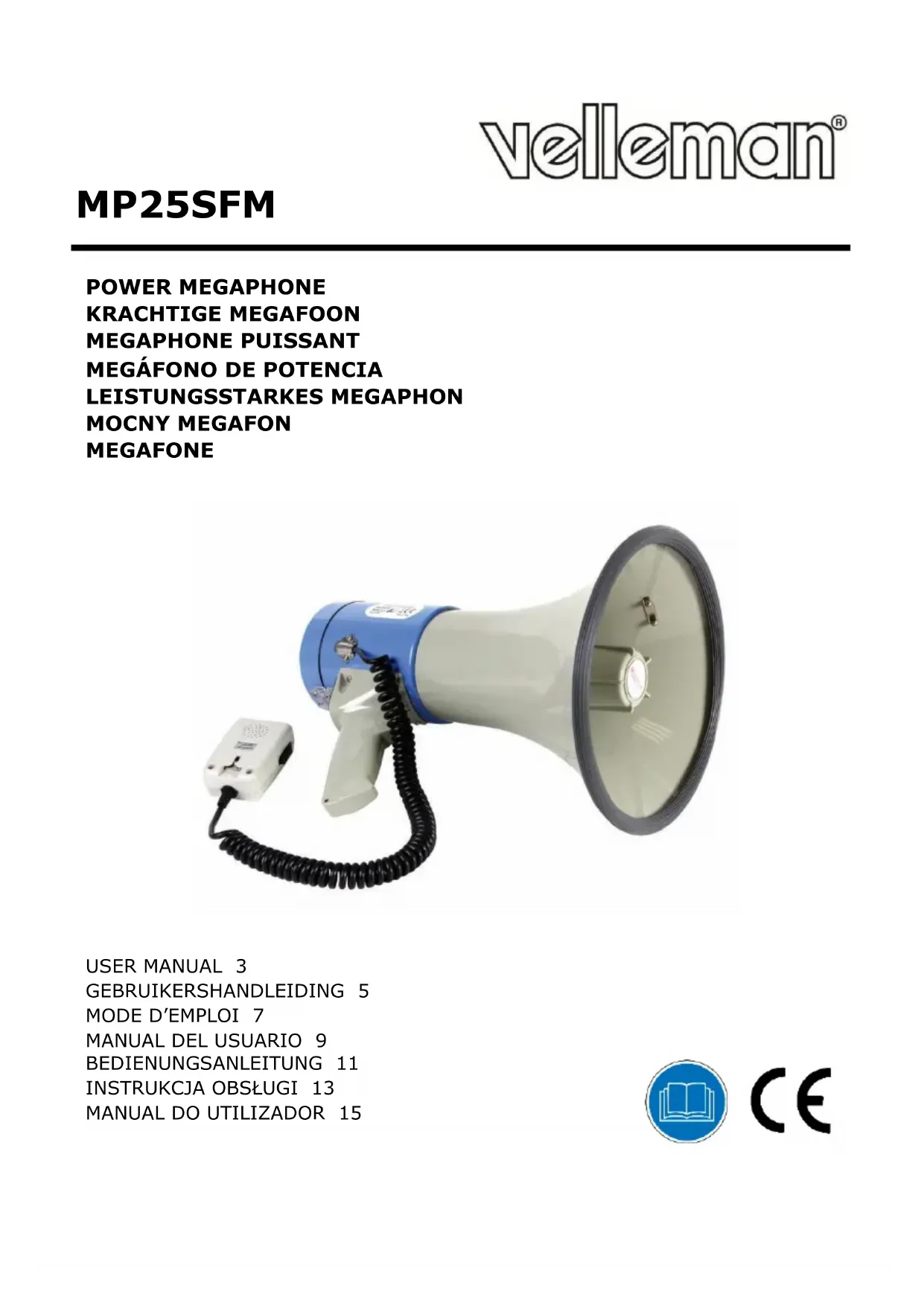 MP25SFM - Mégaphone VELLEMAN - Notice d'utilisation et mode d'emploi gratuit