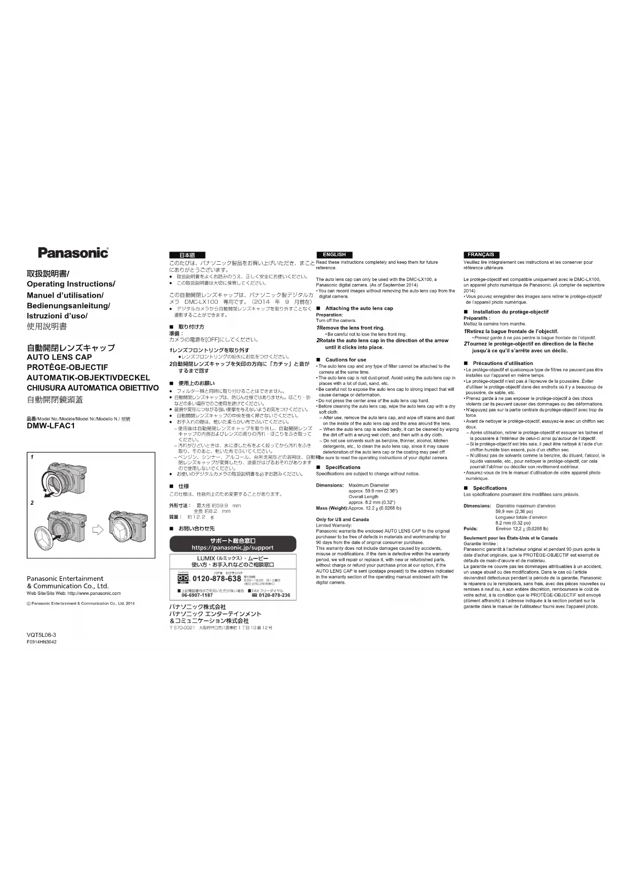 Téléchargez la notice de votre Appareil photo au format PDF gratuitement ! Retrouvez votre notice DMWLFAC1 - PANASONIC et reprennez votre appareil électronique en main. Sur cette page sont publiés tous les documents nécessaires à l'utilisation de votre appareil DMWLFAC1 de la marque PANASONIC.